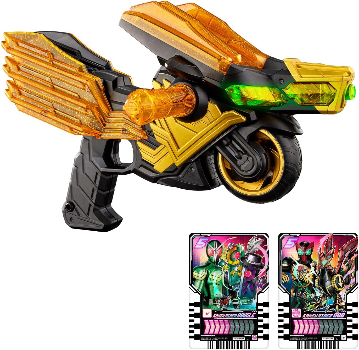 Oh. Wait a second. Okay, so the Legend design overall seems mostly like a combination of Decade and Beast. but there's also some OOO TaJaDor to the mask. The gun literally comes with the OOO and W cards. The gun doesn't look like it has a back half that rotates in any direction to reveal the rest of a bike, but maybe there's still a bike gimmick that uses the W "replace the back half of the Hardboilder" thing. I don't see any listing for a Souchaku Henshin Legend. Maybe a bike back-half might be included with that...? All baseless speculation, of course, but man, that bike front-half looks strange. |
