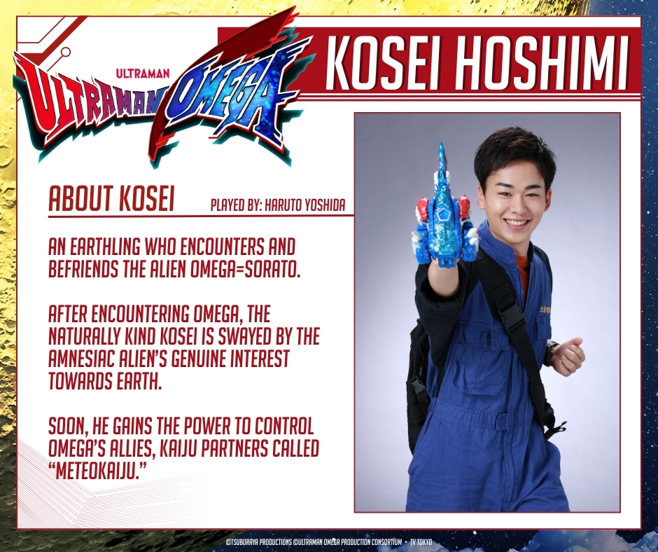 Next cast member for Omega: Kosei Hoshimi and Omega's kaiju partners: the Meteokaiju