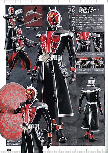 Through scans of Figuroh Magazine, Medicom reveals a Project BM Wizard Flame Style figure is in the works. A nice teaser image is shown of Wizard sporting his It’s Show Time Pose, and a clear scan gives us a look at some of his accessories. A magic circle effect part will be included, along with the Wizswordgun in both Sword and Gun modes. Retailing for a whopping 21,000 Yen, Project BM Wizard Flame Style will see a September 2013 release. |