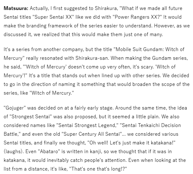 I'd like to say it was around the start of Gozyuger? When we were learning how they decided the name. I can't remember the specific interview but one tidbit of it had been popping up in my circles that I can share.