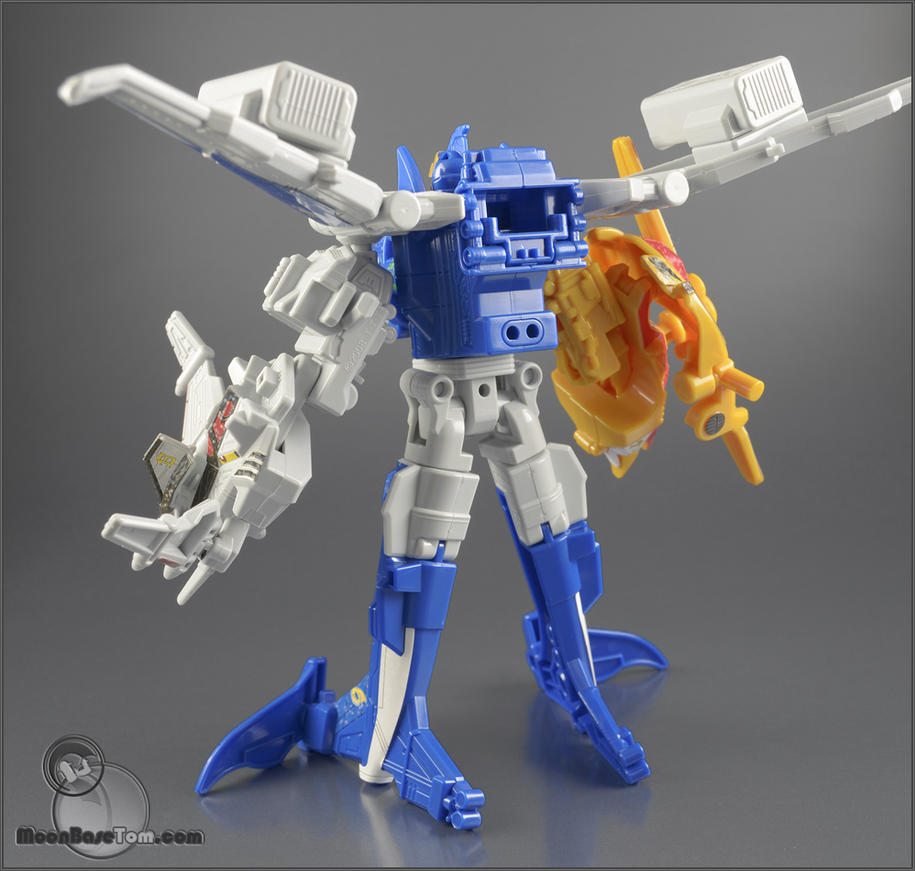 The interesting thing about G9 is that it's actually much better articulated than the previous combinations thanks to the new chest piece giving it better shoulders and the new helmet letting its neck turn properly. This carries over to G12 too. |