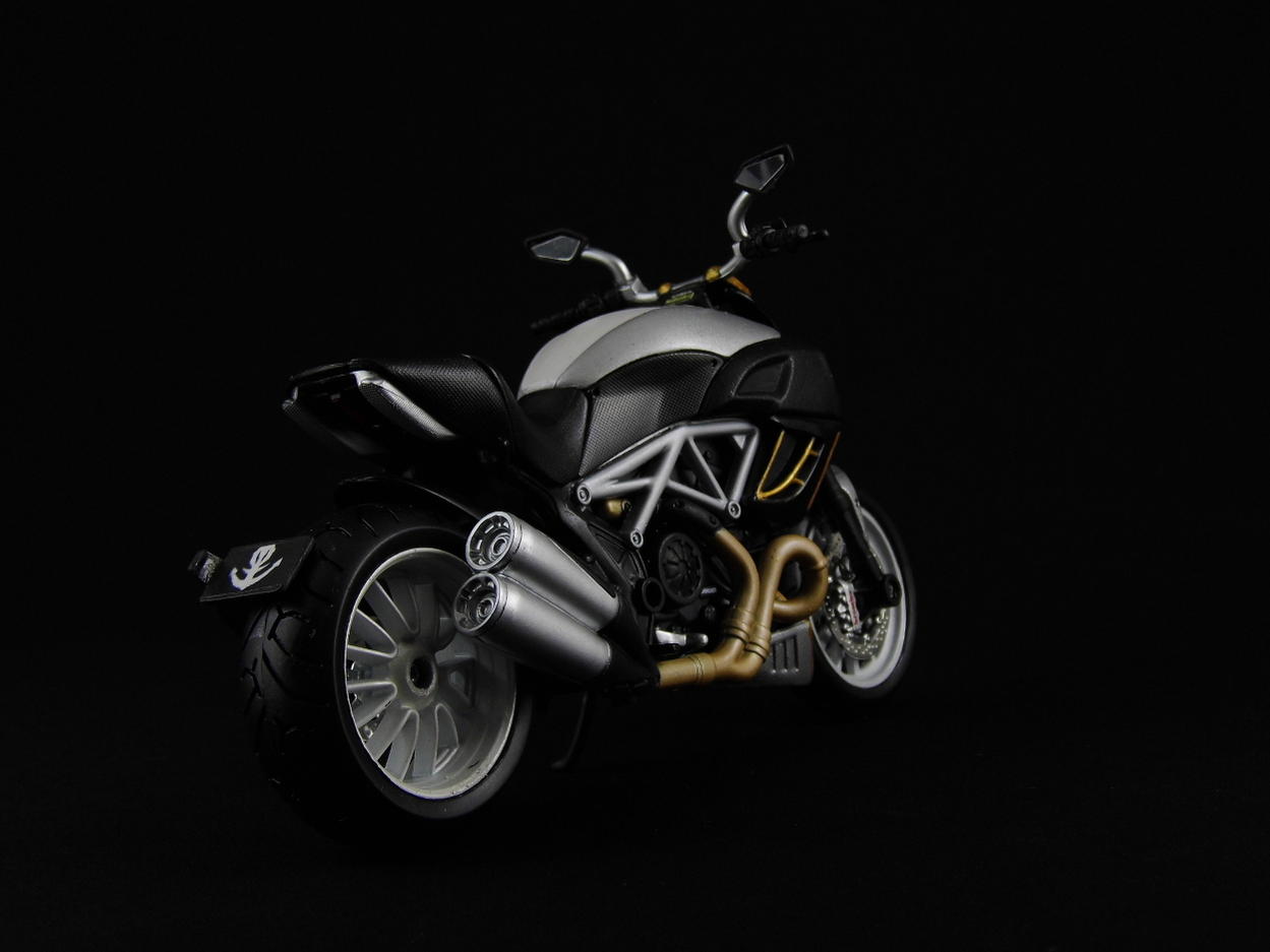 I started with a Ducati Diavel: ![]() Took it apart, masked and sprayed, masked and sprayed some more, and eventually got to this point: ![]() I then decided that it needed some flair. A little gold detailing here and there, and some Gokaiger emblems. KamenRiderOOO came up with the name, a play on Gokai Silver's finisher LegenDream (thanks again KamenRiderOOO). And now we have this, the MachineDream: ![]() Thanks for looking. |