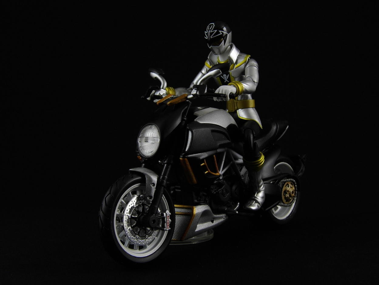 This is somewhat of an exercise in divergent evolution. KamenRiderOOO and I were having a dialogue on custom motorcycles and we both had the idea to give Gokai Silver a custom ride.