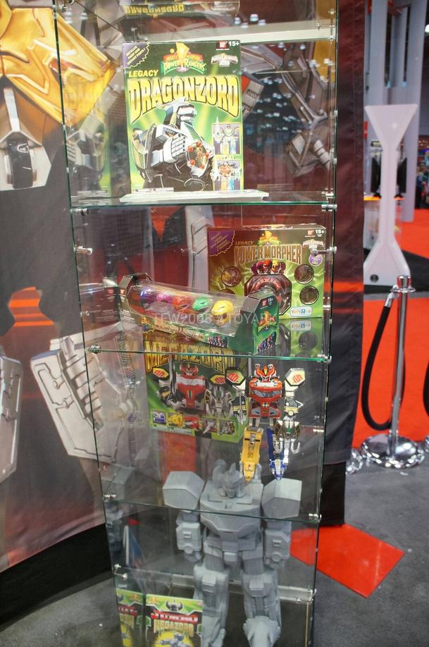 - Legendary Morpher & Ranger Key Assortments - 4" & 6" Classic and Megaforce Ranger figures - Legacy Dragonzord in box - Jumbo Sized Legacy Megazord - Legacy Dragon Dagger! - Super Megaforce Ranger Gear and Weapons - Legacy Mask Collection - Legacy Morpher - Several DX megazord components are also on display including US versions of Gaolion and Patstriker! It would also appear that Bandai is creating more vehciles which homage other Ranger seasons to upgrade the legendary megazord. Notice the Super Megaforce Red riding a Red Zeo Battlezord vehicle? And perhaps the biggest news so far. The SDCC 2013 Gold Legacy Morpher exclusive, featuring both Green & White Ranger Power Coins, will be available at Toys R Us!!
