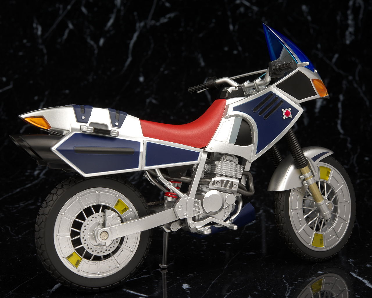 The long awaited SH Figuarts Blue Spader from Kamen Rider Blade has been released in Japan! Thanks to hacchaka we have some images of this bike in hand. The Blue Spader is intricately detailed and complements the SH Figuarts Kamen Rider Blade figure well.