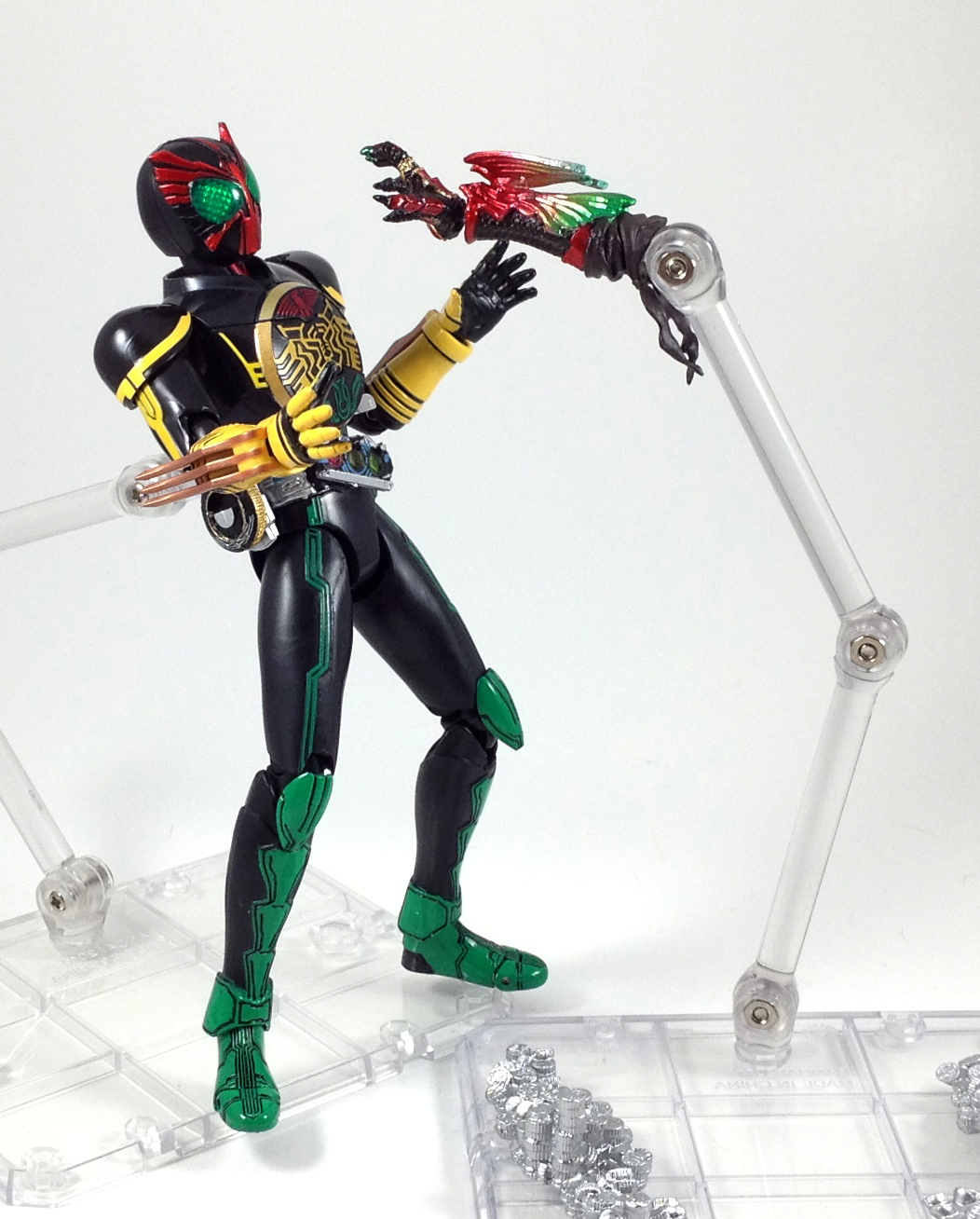 The SH Figuarts Ankh Stand Set from Kamen Rider OOO is a repaint of the Ankh that was a first release bonus with SH Figuarts TaToBa. It features a much more detailed and show-accurate paint job, a Tamashii Stage Act 4, two piles of medals and a total of 5 hands. Being one of the primary characters of the show, this set is a must-buy for fans of OOO.