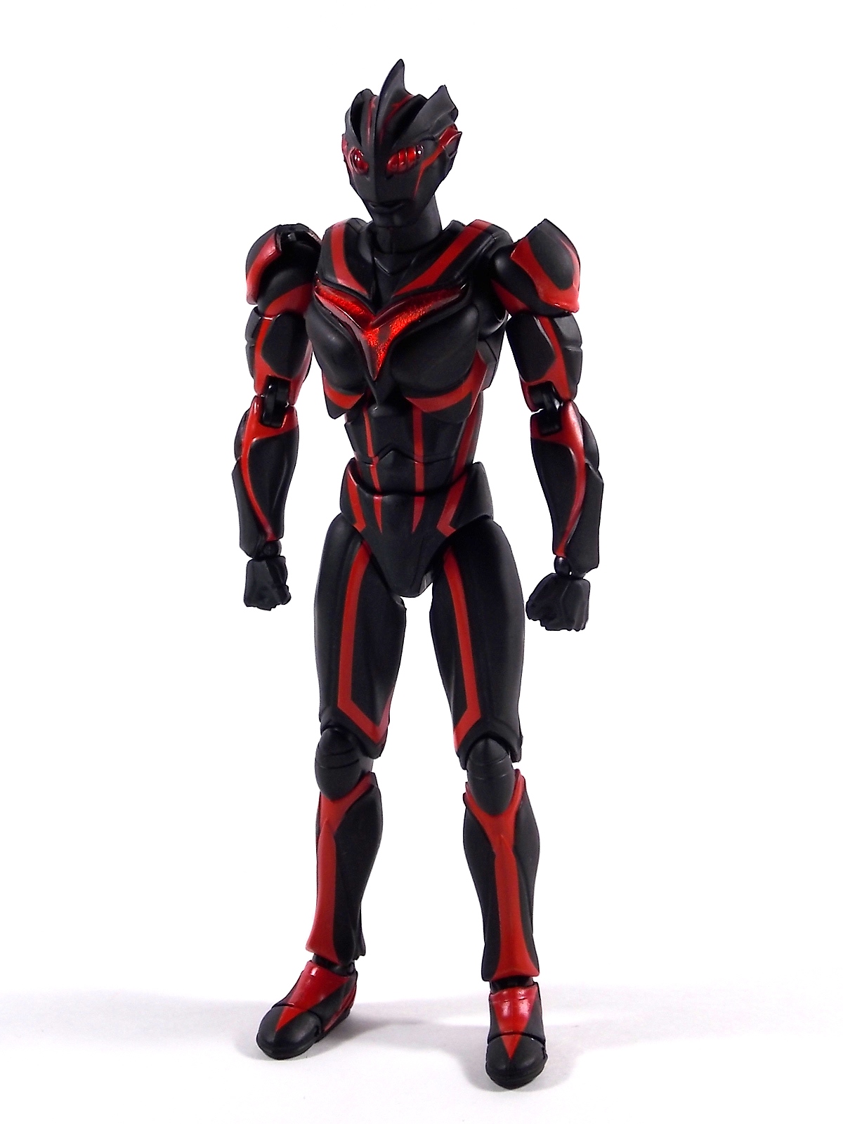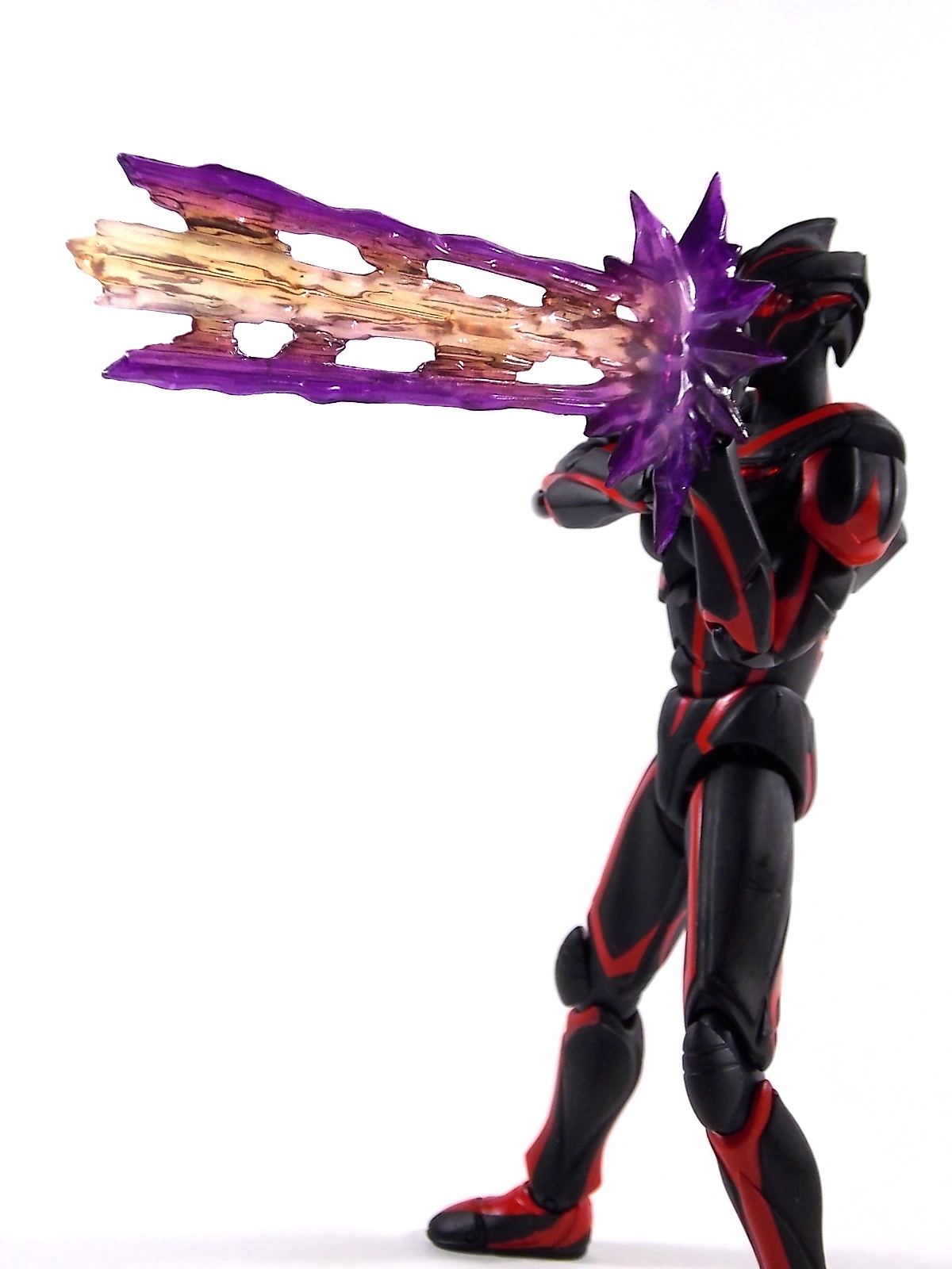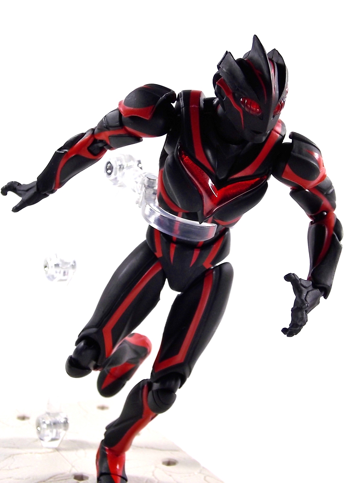 Ultra-Act Dark Zagi is the newest release in the Nexus series of UA's and it does not disappoint. (The companion piece Ultra-Act Ultraman Noa will be out this month and we'll be bringing you a gallery of it ASAP) A little background for those who missed this LWW segment. Dark Zagi is a being created by a race of aliens known as the visitors. The beings cloned Zagi from the powerful Ultraman Noa, after witnessing his ability to protect life. During the process however Zagi went insane and destroyed The Visitors homeworld. Gathering the Space Beasts together Zagi rampaged across the universe. An ensuing battle with Ultraman Noa, and a brief run in with the Showa Ultra Universe, would render Zagi without physical form and Noa almost entirely expended of energy. Both Noa and the visitors wound up on Earth predicting the return of Zagi there. Zagi arrived nearly 18 years before the beginning of the TV series and inhabited the body of a human who would one day become an integral part of TLT. Using this guise he killed and manipulated anyone and everything he could until the final episode of the series when he could finally seize Ultramans power to regain his original form. But just as before the mighty Noa rose up to defeat Zagi. A version of Zagi would later appear in Ultraman Ginga with much of the same rampaging personality. Now for the figure, for starters Zagi is absolutely gorgeous. Of all the recent Ultra-Acts which take advantage of improved design and quality in the line, Zagi is one of the best. Right up there with Ultra Seven Renewal and Father of Ultra. The deep almost blood red markings accent his black body very well and it gives off the most devilish look the form of an Ultra can achieve. Zagi may not have tons of accessories, but what he comes with is perfect for him. Of course there's the standard extra sets of hands, and even a beam effect to replicate his Lightning Zagi Attack. However this release goes the extra distance by including an explosion effect piece. One meant to go with Ultraman Noa to replicate their final struggle in the last episode of Ultraman Nexus. With Zagi in Space and Noa in Japan their twin beams met in the atmosphere with explosive force. This effect piece appears to be specifically molded on both sides to only accept either Zagi or Noa beam effects. The Nexus used in this photo shoot can sort of peg into it, but not securely. Also included is a small display base to hold this effect piece. Zagi has a fantastic range of motion, especially in his neck where it's the most needed to replicate his animalistic movements and contortions. This figure does the absolute best job of capturing the wild chaotic nature of this character. It's a welcome addition to any Ultra-Act fans collection.