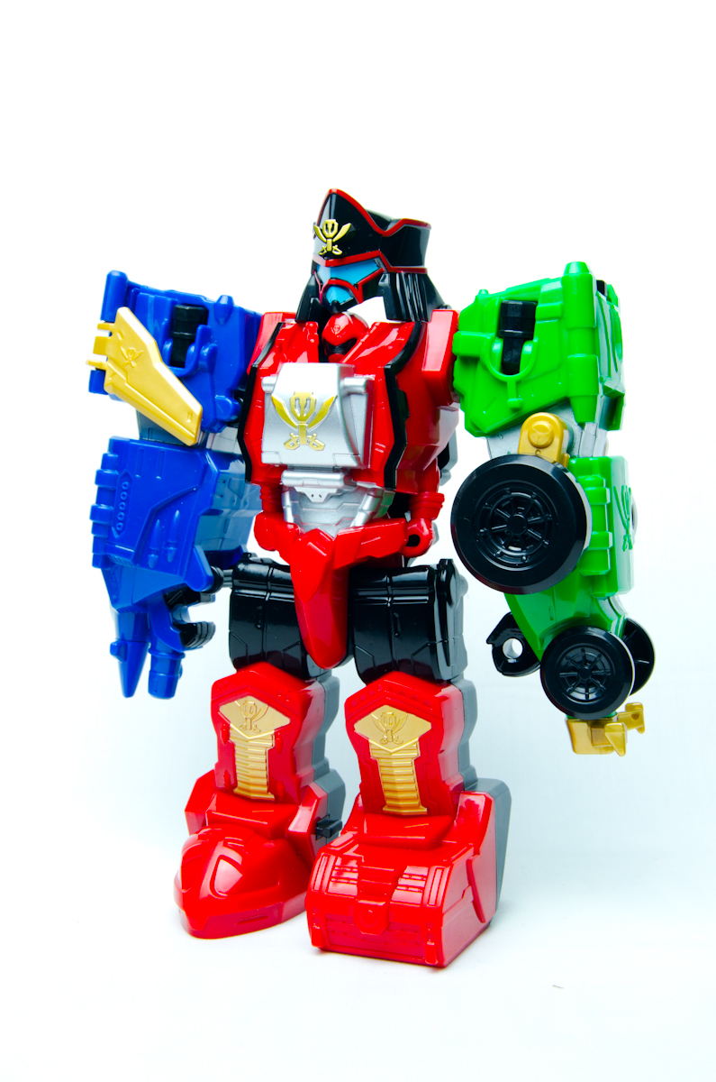 Today we're taking a look at the Deluxe Legendary Zord Armor Ranger set recently released with the Deluxe Gosei Great Zord Armor Ranger as part of the Power Rangers Super Megaforce toyline. This set is loosely based on the Legendary Megazord but has a more cohesive red, black, and silver color scheme. The Megazord has 8 limited points of articulation including 3 in each arm and 1 in each hip. As a part of the Zord Builder system, this Megazord has a total of 10 ports including 2 male connector pegs and 2 female ports on the torso, 1 male connector peg on each 'forearm weapon', 2 female ports in each shoulder piece, and 1 male connector peg in each hip. The set comes with a 4 inch Super Megaforce Red Ranger figure that is able to fit in and 'pilot' the Megazord. The Ranger figure has 4 points of articulation and a simplistic paint job on top of red plastic. The figure comes with no weapons. The right Cannon 'forearm' of the Zord Armor Megazord can be detached and placed in the chest of the DX Legendary Megazord. The left 'Key' forearm of the Zord Armor can be detached and used in either the DX Legendary Megazord or the DX Legendary Morpher. When used with the morpher it unlocks the Super Megaforce Red and Summon Skyship sounds. With the Zord Armor Megazord's multiple Zord builder pegs and ports, multiple cross-line combinations can be made. The two 'official' combinations shown between the item's box art and instructions are to attach the arms to the DX Legendary Megazord or to use the whole armor as an arm on the DX Megazord. All in all, the DX Legendary Zord Armor set is an odd one. It's a gimmick-filled toy simply made to pad out the toy line, but it does have a lot of playability. The integration of the key gimmick as a weapon/arm/ is clever and so far, this set is the only way to get the chest cannon to complete the DX Legendary Megazord. Last edited by conundrum; 02-02-2014 at 11:00 PM.. |