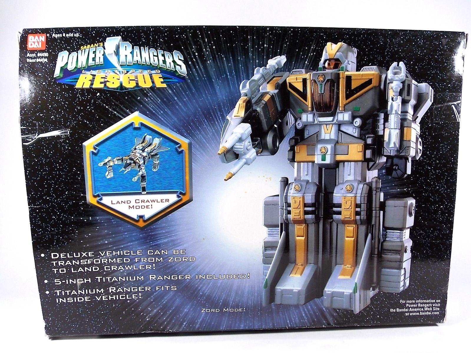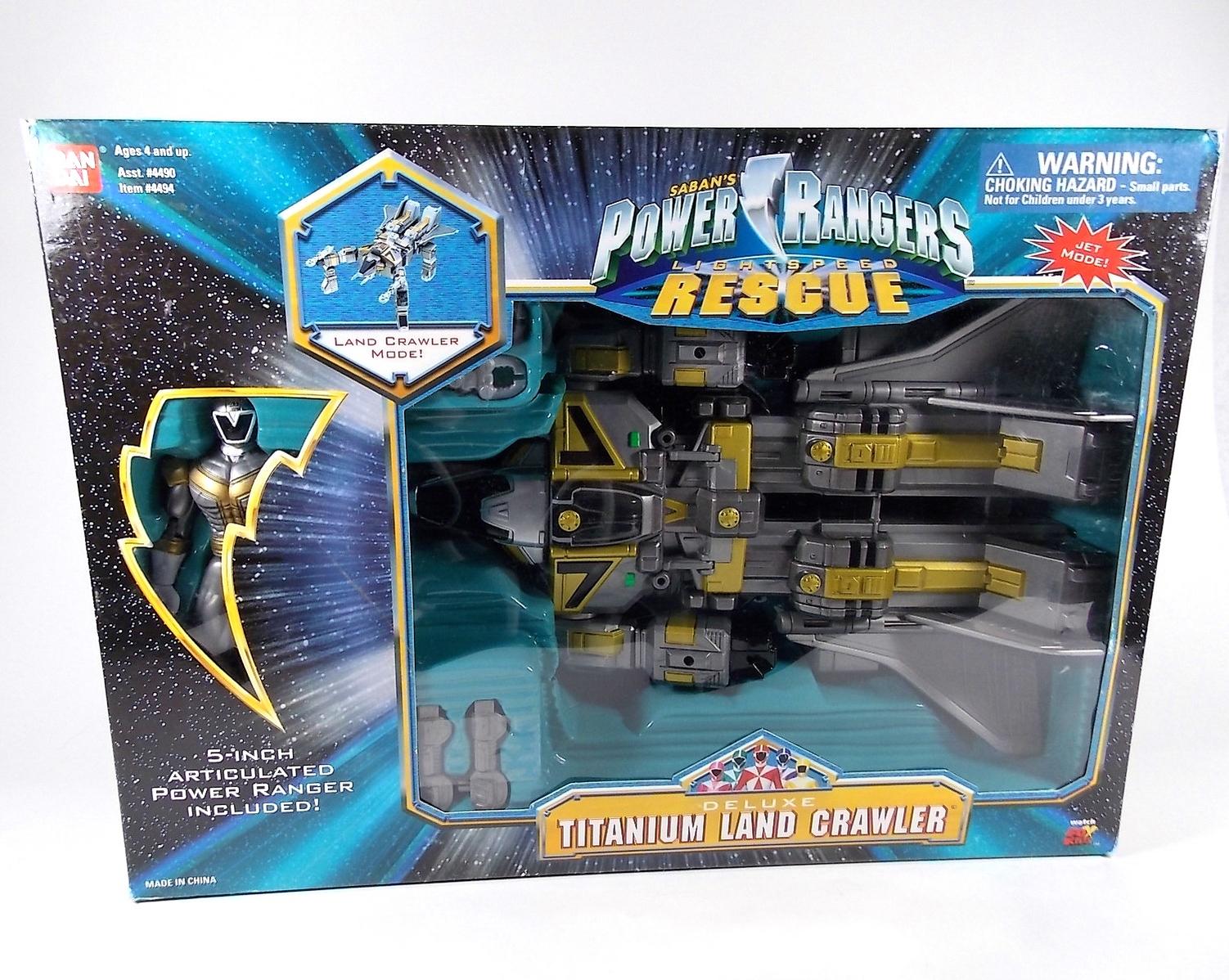 We're back with one more push to shore up support for the first truly original Power Ranger, Titanium Ranger! Before you check out our images be sure to head over to Morphin Madness and #VoteTitanium Ranger today! Today's subject is the Titanium Crawler! Avid fans of course know that the Max Solarzord was billed as Titanium Rangers personal zord in Lightspeed rescue. However since Titanium Ranger was produced entirely for Power Rangers, with no Sentai counterpart, he doesn't have a zord made specifically for him. The Bandai of America toyline for the series sought to rectify that with the Titanium Crawler. Designed by PLEX, the company behind Sentai toy design for decades, this vehicle almost made it into the series. Unfortunately the budget for Lightspeed had already been stretched thin just from creating the Titanium Ranger suit and accessories. Add on top of this things like the Trans-Armor Cycle, Mega Battles, and Red Mobile Armor, and there simply was nothing left for the Titanium Crawler. That being said, the toy is still very fun. Sharing a design at a basic level with the Red Ranger's Mobile Armor this unique vehicle has it's own robot and vehicle mode. The Robot mode stands roughly 11" tall and can accommodate a ranger figure standing up fully inside of it. In this mode the forward section of the vehicle becomes a handheld gun and there are also 2 included pressure firing missile launchers which are normally stored on the forearms but can also be held in either fist. As you'll note based on the boxes stock photography, the final product varies quite a bit in paint applications and a fair amount in mold details. The Titanium Crawler mode is very very similar to the Omega Megazord in it's alternate configuration. Clearly inspired by it. Surprisingly, and undocumented via the instructions, the crawler can open up and form an appropriate cockpit for a ranger figure to pilot it. Showing again where the final product differs from stock images, there are even control stickes which rotate up from the waste for a ranger to grab. This adds some much needed playability to the otherwise brick that is the robot mode. The included Titanium Ranger figure shares the same basic body mold as the Electronic Lights/Sounds figure of the character. Though because it has no electronics it's articulation isn't hindered. The head can actually rotate on the neck joint, and the shoulders can actually rotate 360 degrees this time. Also of note is that the gloves and boots are the properly colored white this time rather than the odd blue of the previous release. Combo-ing this version of the Titanium Ranger with the superb accessories of the previous one gives you one near perfect figure. Also included with this Titanium ranger figure is a Rescue Blaster accessory. All in all this is actually a pretty damn nice set. The Titanium Ranger included with the Crawler is easily the best representation of the character that currently exists, and that includes the subpar Super Legends figure. The Titanium Crawler itself is actually quite fun, and I can never resist something that's original and truly inspired like this. Much like Titanium Ranger himself and his in show arsenal, this one feels like it was always meant to be a part of the show/toyline, rather than being solely designed for the US adaptation.