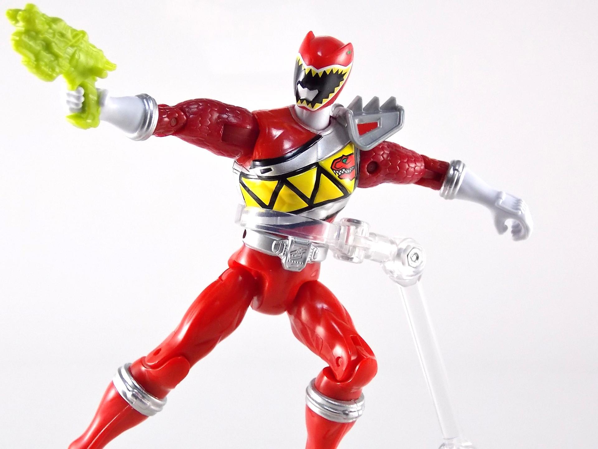 TokuNation is ready to ring in the new year with yet another gallery from Power Rangers Dino Charge! And today we're taking a look at the 5" Dino Charge Red Ranger! Packaging It seems that for this years rangers Bandai of America has stepped their game up from the rather bland semi-circular packaging of the Super Megaforce 5" line to what we have here. For Dino Charge we've been treated to some detailed packaging with pretty rad and elaborate graphics & images. Taking it's cues from the Super Megaforce line though this new 5" line also features a nice stock shot of the ranger in question on the back as well as a multi-lingual bio and a short list of stats. The packaging mistakenly labels the Red Ranger with the name Lucas, which was the original name for the character. The name was changed to Tyler when it was realized that Lucas had been used previously for the Blue Time Force Ranger. In any case it appears the change was made too late into the toy lines production cycle to change the name. A cross-sell along the bottom also advertises the other 4 Dino Charge Rangers as well as the initial villain figures for the line, Fury & the Viviks. Main Figure At this point there aren't many surprises left for figures in this scale. The Super Megaforce 5" was liked by many but was not without it's faults. While the figure were of decent quality most of the time they suffered from all too generic sculpting and parts reuse. While I'm sure that will happen here as well, for now Dino Charge Red Ranger is a fairly solid figure. It's standard fair as far as BOA figures go, but it's a pretty decent representation of the character. Definitely much more so than the barely articulated 5" Red that came with the Dino Cycle. While most of the basic tooling is similar if not identical to the Super Megaforce line, the Dino Charge suits feature much more detail, as do their figures. You'll see the standard hip peg hole and basic joints on theis figure. But the scaled look on the upper arms, the newly molded gauntlets, a decent head sculpt, and a hinged shoulder pad can go a long way to making a cheap figure like this look a little nicer. That being said I've seen reports from numerous collectors about sloppy paint applications on their 5" Dino Charge Rangers. While the paint apps are hardly accurate in the first place (inaccurate back of the suit and Dino Com) the overspray of silver on the Dino Com itself is pretty bad. Things like this are all too common in mass market toy lines like this but it's still a knock against an otherwise fine figure. Accessories As is the case with the other 4 simultaneously released Dino Charge Rangers, the 5" Red Ranger includes only two accessories: 1 - Dino Saber. Molded entirely in a lime green plastic this is the one part of the figure that does not exceed the predecessor line. No paint apps on the accessories makes look rather cheap. At least if you're going to cast it in a single color get that color right. While the blade should be this color the entire weapon shouldn't be. Though no one color would have really gotten the job done for this one. The sculpt is otherwise fairly intricate and detailed, a nice paint wash could actually bring quite a bit of that out. 1 - Dino Charge Morpher. Suffering from the same gang molded color issue as the Saber, the Morpher likewise has a great amount of detail that just can't be seen that well. If anything this accessory should have been cast in solid yellow rather than green to at least try to simulate what it should look like. Obviously these weapons don't combine into the Dino Cannon at this scale but that would have been a nice touch. Though it's only two accessories it's about the best we could have expected for a figure of this size at this price point. While they certainly aren't perfect, they do get the job done. Final Thoughts While I've never personally been the biggest fan of the 5" Power Rangers line, it's apparent that the Dino Charge 5" Rangers are nicer than what we got with Super Megaforce. Are they perfect? No, far from it. But for a collector on a budget who wants to own their favorite ranger this is a pretty good stand in. Paint & color issues aside the 5" Dino Charge Red Ranger will look great with most any other 5" ranger figures.