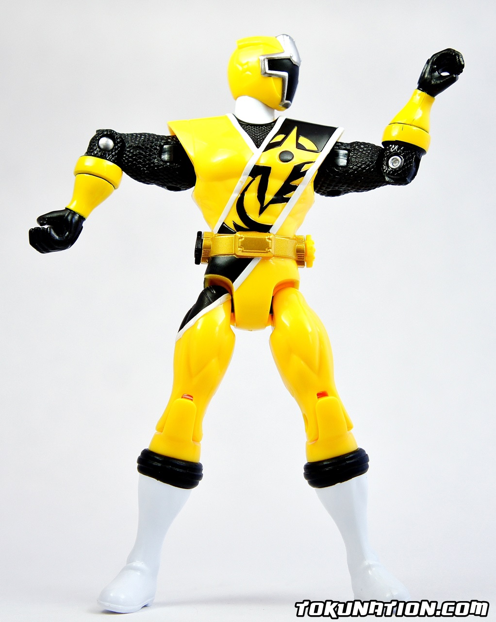 This review will be short as we are actually running out of things to talk about in terms of the actual figure as it is the same as the other two releases, just with a new head, a new shuriken, and yellow paint. The Figure The standard Bandai of America 15 points of articulation. The only difference aside from the paint is a different head sculpt (see picture) and a different shuriken on the belt (see picture). I have to admit though - the yellow paint on Ki Ninger gives him a much more "pop" feel to him. He's my favorite of the group because the yellow and black color scheme meshes much better than the red and black or the blue and black. The Accessories You get the usual soft, unpainted black plastic Ninja Ichibantou, Gamagama Gun, and the Karakuri Hengen is in its claw form. Much like with the release of Aka Ninger and Ao Ninger, the soft plastic and strange handle makes holding the Karakuri Hengen awkward. It should be noted that the hands on these figures are made of softer plastic than the rest of the figure. My thought is that it allows the fingers to be moved in order to hold the weapons. Unfortunately it also means that they will be more likely to move around or fall out entirely on their own - you can only have these figures hold the Ninja Ichibantou in two ways because having the hilt be sideways will allow it to fall out of the figure's grasp. The Final Verdict As stated before - if you want a head start on what could very well be Power Rangers 2017, by all means pick these up. If you prefer a more show-accurate version, I'd say hold on and hope that we get some S.H. Figuarts representations of these characters in the future. Otherwise, the vinyl figures are also a good option. If you're in to customizing figures, the unpainted accessories should be a lot of fun for you. For what equates out to about $10 a figure you can easily justify reasons to buy them. But if you're on the fence with these figures, and you're a typical collector of Bandai Japan products, you will be sorely disappointed by this offering of the Ninnin Action line.