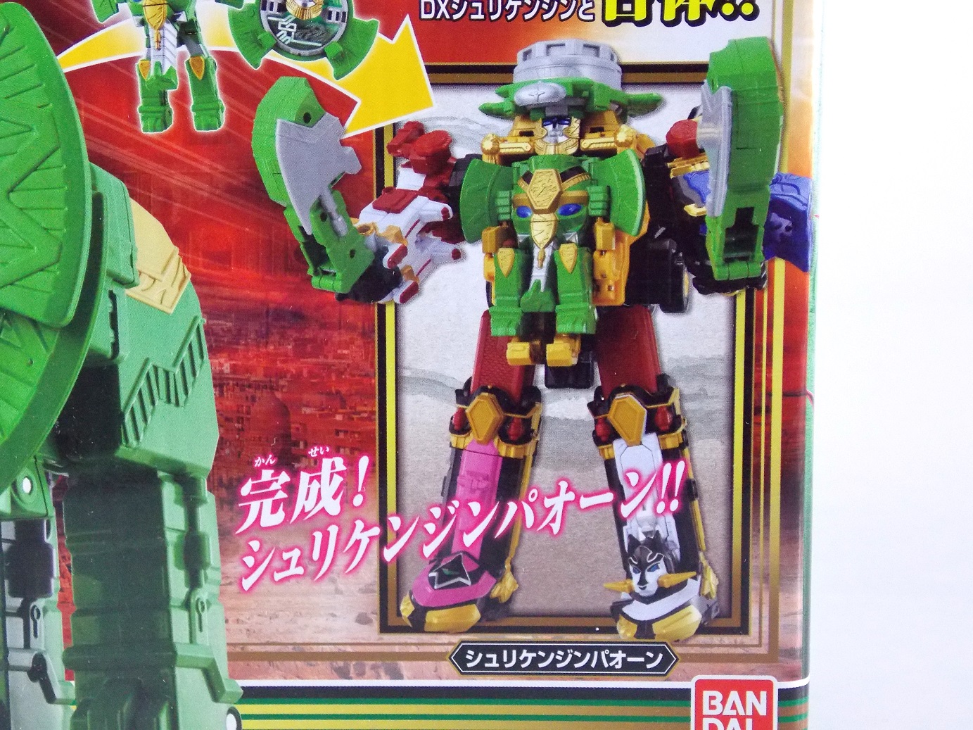The incredible melting pot of the Shuriken Sentai Ninninger toyline continues with the addition of the first Otomonin upgrade mecha! The DX Paonmaru! Born from the first of the restored Sealing Shurikens, Paonmaru joins the Ninningers in their fight against the Youkai! But we're here to talk the toy of this interesting mecha, so read on below! Packaging DX Paonmaru comes in a pretty standard small cardboard box, and by the looks of it so will the rest of the Otomonin. It's pretty basic stuff for sentai lines honestly. Once one additional mecha comes out they almost all follow the same formula for packaging with each successive release. Some basic stock photography of the figure as well as shots of it's combined forms to round it all out. Main Figure A bit of an odd one, DX Paonmaru has an interesting transformation method to say the least. The standard form of this figure is indeed it's elephant form. To create it you need to take the the two axe weapons and plug them on to the back of tiny half robot. It's legs in turn fold out and forward. The Shuriken itself with the disc attached then plugs onto what will be the chest of the robot mode later. Then simply plug the elephant face and trunk on. Thus completing the look! It's actually a pretty intricate little figure in this mode, despite a general lack of much in the way of paint apps. Though nicely enough the head, front knees, & trunk are all painted very well. In the same way that Shinobimaru has a greatly detailed chest, so does Paonmaru. It's about on par sizewise with one of the only other elephants we got in sentai, Hyakuju Sentai Gaoranger's Gao Elephant. I don't actually own a Geki Elephant to compare it with. Though you can't get much pose wise from this form it's pretty fun. The basic robot mode for Paonmaru can be achieved by reassembling the given components. Separate everything back down to it's base and start from scratch with the small humanoid robot. Straighten the legs out properly and then fold the head up out of the back of it's chest. Take the face/trunk portion of the elephant and plug it onto the Paonmaru robot's chest which gives you the basic robot. The Elephant head actually completes the arms of the robot weirdly enough. The base robot only has elbow length arms but some tiny fists are sculpted into the head section to complete them. Then take the Axe/hind legs and attach them to the shoulders to add two giant missile launchers. The actual Shuriken and disc aren't used for this mode at all. But that gives you Paonmaru in robot mode, comparable size wise to Shinobimaru though quite a bit bulkier. He fits right in. Accessories It's hard to classify accessories with something like this as it's harder to distinguish between those items which are included with the figure optionally, or those things that are integral to it's basic structure. Nin Shuriken Base & Disc. This electronic item is what forms the head and face of Shurikenjin Paon. It's normally stored on Paonmaru's animal form plugged onto the neck as a mane-like appendage. I find it slightly odd that so far bot Paonmaru can store these items in at least one form, but Shinobimaru has no such storage options for the Shurikenjin Nin Shuriken when not in use. A pair of triggers on this piece detect when it's combined to form Shurikenjin Paon and plays out the appropriate phrase & music when done. When not connected pressing the physical button on top will cycle through three sound bytes "Paonger" "Paonmaru" & "Otomonin Shuriken". Shurikenjin Paon To get Shurikenjin ready for this combination you need to remove and rearrange a few things. Start by removing the standard Shurikenjin Shuriken and leaving that to the side, it won't be used. Remove Shinobimaru from the throne all together, and then remove the right arm made from Dumpmaru. People often question why a third shoulder peg exists on the back of the figure and it's for this, to store the arm you just removed! So plug the Dumpmaru arm there and transform Shinobimaru into the new right arm and plug him on. Now take the basic Paonmaru robot minus the shoulder cannons and fold his legs up to seat him in the throne. It should be noted that seating his hand over the control mechanisms on the throne is a little bit difficult. But once you do it looks pretty great. Then simply plug the Paon Shuriken onto the the neck of Shurikenjin. As a side not the new faceplate is pretty awesome looking compared to the standard Shurikenjin face, mine though appears to be molded on a little bit crookedly. Now take the Paon Axes and flip out some small handles on the bottom of each. Plug them into the combined robot's hands and there you have it, Shurikenjin Paon is formed! Sadly the axes are rather small and inaccurate but that's to be expected. These things tend to make some small compromises in toy form. Whether it's intentional or not you can plug the axes onto Shurikenjin's back for storage. This form manages to incorporate most everything from the standard Shurikenjin mode aside from the Shuriken, Drago Sword & Shield. But you'll see that you can still store or use the Drago Shield & Sword if you so choose. Either way Shurikenjin Paon is a pretty welcome sight. The green & gold Paonmaru brings to the table really helps break up the otherwise uniform color scheme of Shurikenjin and mixes it up a bit. It's a pretty great look actually. And because of the dynamic hips Shurikenjin has you can get some decent poses out this form. Final Thoughts As this line continues I continue to be very pleased. The Otomonin series of additional mecha is shaping up to be a pretty damn fun one. While it's likely these many upgrades won't be incorporated into any sort of final combination robo, they each seem to have a unique charm that I love. DX Paonmaru is a great addition to this line that once again gives it a pretty great variety of design. After 2 years of being pretty unimpressed by the mecha lines of sentai (Kyoryuger, ToQger) I'm happy