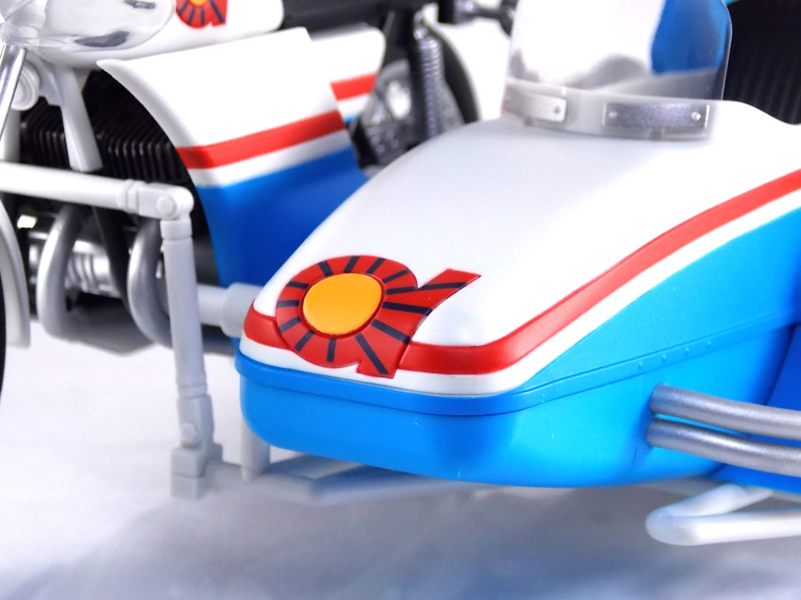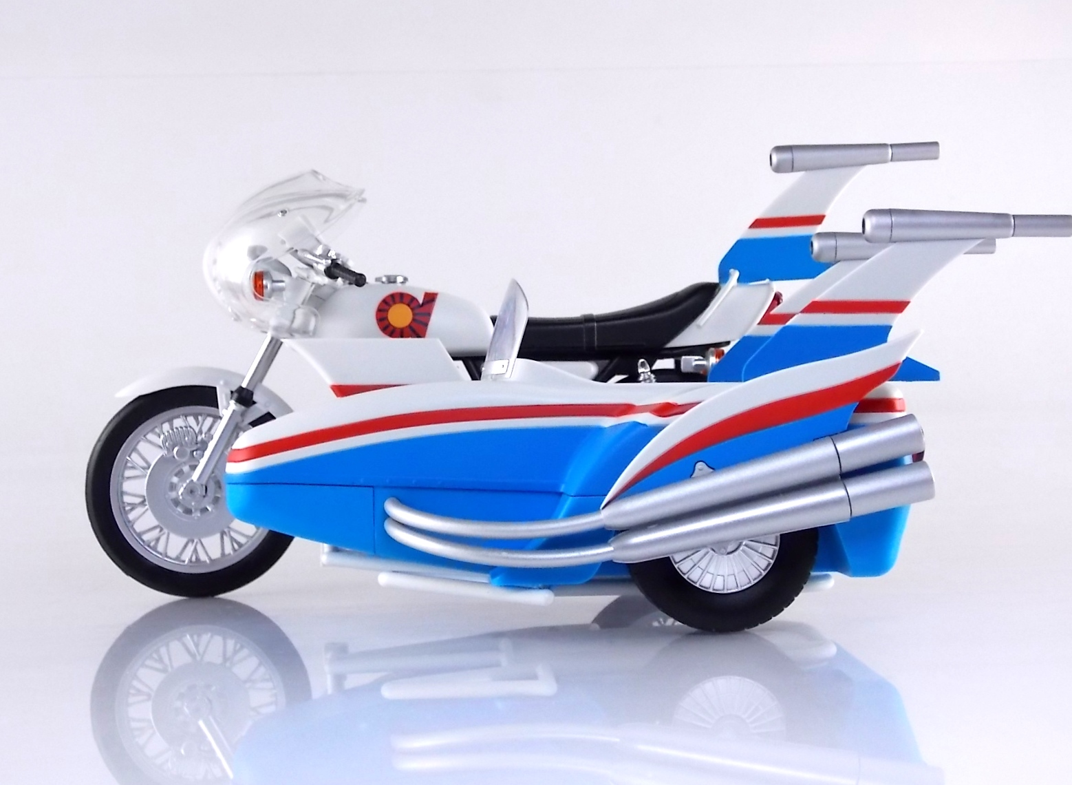Befor checking out the below gallery, please be sure to check out all of our previous Kikaider related galleries as well! S.H. Figuarts Kikaider S.H. Figuarts Hakaider S.H. Figuarts Kikaider's Side Machine S.H. Figuarts Hakaider's White Crow S.H. Figuarts Kikaider 01 S.H. Figuarts Gill Hakaider S.H. Figuarts Hakaider Squad (Red/Blue/Silver) Packaging It's all business as usual with this release. The Double Machine comes in the same type of box as all of the other Kikaider & Hakaider releases in the line. Same gorgeous minimalist art on the box and sleek packaging all around. Only difference here is the size. Due to the Double Machines' size the box is basically about as large as the Hakaider Squad 3-pack. Main Figure The main event so to speak is here! The Double Machine itself is an impressive follow up to the older model Side Machine. Both Machines clearly share basic design choices that unite them in the same family of vehicles. The Side Machine was of course based on a Kawasaki GT 500 Mach III, though the Double Machine's heritage is a bit more dubious to my knowledge. The Double Machine comes packed as one gigantic piece. The only assembly necessary is the 3 spoilers that are included detached. 2 of them plug onto the sidecar and one on the main bike. With that little bit done we've got the completed Double Machine! Obviously the immediate take away is that this sucker is huge. Significantly larger than even the Side Machine which is itself a huge bike. Both of them share the unique honor of being the only side-car bikes in the entire S.H. Figuarts toyline. On top of this the Double Machine simply is a more extravagant vehicle. There are quite a few more ornamentation's and paint apps applied here than on most Figuarts bikes. That's just a product of the time in which this bike was designed. 70's toku is a hell of a drug. As is though the Double Machine is just gorgeous. And frankly mine is flawless. Very impressed with the QC on this thing. The paint is crisp, the molding is sharp. No scratches on the windshield. The Kikaider 01 emblems look gorgeous. And all the right details are sculpted in. The Double Machine is likely the best detailed bike I've seen in the S.H. Figuarts line. It just screams 70's in all the best ways and looks even better when you put Kikaider 01 on it. Obviously this is just a bike so it doesn't do much on it's own. If you don't own 01 then there's not much point in having this. But with at least a driver on board it looks fantastic. The side car can accommodate pretty much any other S.H. Figuart you want it to as well. I had fun putting Kikaider in there. Accessories Just the 3 above mentioned spoilers. No hands or extra handlebars or any of the usual stuff. This is an extravagant bike all it's own and Kikaider 01 already came with the hands he needed to hold the handlebars. So this is a pretty much complete package already. Final Thoughts I've been more than happy to throw myself whole-heartedly into the Kikaider subline of S.H. Figuarts. I've devoured every successive release and been left wanting more. Bandai could crank out as many Kikaider releases a year as they wanted to and I'd take them all. In the course of the last 11 months we've gotten 8, at roughly 1 new release every month or so I am totally pleased with that pace. Considering how Sentai Figuarts seem to struggle with releases and sales, I'm shocked Bandai wound up so dedicated with Kiakdier. If the quality continues at this upward trend I doubt I'll be disappointed any time soon either. While Kikaider himself was in my eyes a fairly substandard release, Hakaider was an improvement. And the trend continued from there until we're here with the gorgeous S.H. Figuarts Double Machine! While I could continue to profess my love for Kikaider figures all day long I'll just say this, a bike like this is for a completionist or a true lover of the franchise only. If you don't have an immediate and reactive desire to own the Double Machine, then you don't need it. I needed it, and I'm happy to have it for the impressive piece of toy it wound up being. If this is the last releases that Bandai chooses to end the Showa Kikaider line on then I'm certainly not disappointed. But please give us more Bandai, there are so many figures and vehicles left to do. I'll buy every one.