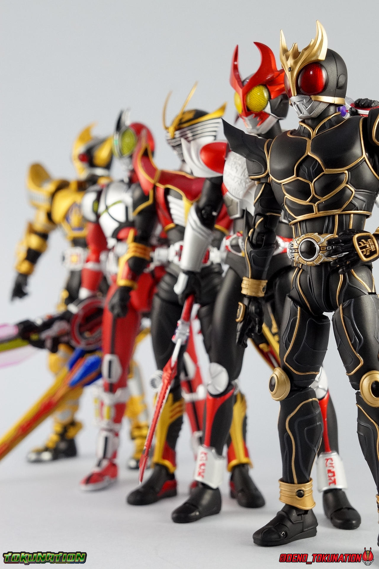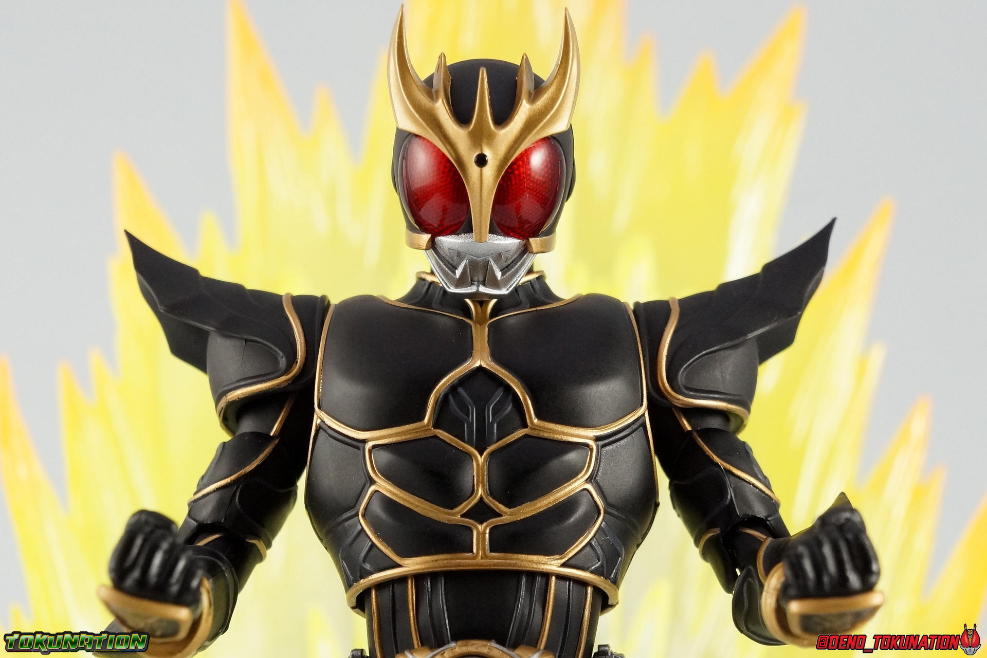 Following up on our special retro gallery of the original S.H. Figuarts Kuuga Ultimate Form, we now take a look at the premium successor to that release with S.H. Figuarts Shinkocchou Seihou Kamen Rider Kuuga Ultimate Form! The so far 3rd release from Kamen Rider Kuuga in the Shinkocchou Seihou line, Kuuga Ultimate is possibly the best. Read below to see how it compares to the original. Packaging Shinkocchou Seihou Kuuga Ultimate comes in the same kind of gorgeous slip cover box we've become accustomed to with this premium line. From Kabuto to now this packaging is always a delight. I love the grainy almost instagram filter look for the box art. The solid white stacked parts trays just work for me as well. I know it's a fairly simplistic packaging design, and it changes even less release to release than other normal lines, but I really like it. Main Figure The most important thing to note about Shinkocchou Seihou Kuuga Ultimate is that in every conceivable way, it outclasses the original release. There is no contest. The pictures really speak for themselves, but here are a few really important things to note. S.S. Kuuga Ultimate is designed with the same mentality that began way back with S.S. Kabuto. Building a realistic human form from the ground up. This releases' sculpt is dynamic and appears to be very powerful, even when in the most static of poses. You can easily imagine that's really Godai, brimming with power. Just as this form should appear. The proportions help convey this too, they're just so much more bulky and solid than the originals lanky legs, skinny knees/elbows, and all around emaciated look. Yes S.S. Kuuga Ultimate is a tab bit shorter than the original, but that height is appropriate. The original release was too tall in the first place. It should be mentioned that the hips are also massively improved with this release. Gone are those pathetic drop down hips on the original. No more worrying about scraping paint off when it impacts the waist. The second major improvement here are the paint applications. The original release was plagued by inconsistent paint apps that were often over-sprayed or under-applied. They easily flaked and frankly they weren't the correct color either. The gold on the S.S. release may appear toned down to you at first, but the truth is the original release had some garish color to it that's just not accurate to the show footage. The original figuart almost has a green tinge to it's gold, the S.S. release manages to capture the ornate gold plating look this form deserves. Likewise the "veins" on the armor are more appropriately close to grey, rather what seemed like blue on the original. Finally the poseability that S.S. Kuuga Ultimate embodies is unmatched by the original. I've taken the time to recreate a number of the shots from my original Ultimate Kuuga gallery in this one in sequence, specifically to demonstrate just how improved this figure is over that one. The Shinkocchou Seihou line began with the intention of creating realistic expressive human motion, in figure form. As was clearly evidenced by the lengths to which the design team first implemented this pseudo-skeletal design structure in Shinkocchou Seihou Kabuto. This figure manages to come alive simply, where the original just couldn't. Accessories This is a pretty basic breakdown, but one that's entirely appropriate for Kuuga Ultimate Form: 1 - Ultimate Dark Eyes head. Unlike the original Kuuga Ultimate, which only included a swap out visor, this version opts to include a full helmet. The Dark Eyes represent the inherent evil/drunk with power nature of this form, though Godai was rarely seen using it. Rather than becoming like Daguva he would revert to the red eyed form more often. However the Decade version of Kuuga is well known for succumbing to the Dark Eyes form for both Ultimate & Rising Ultimate forms. This head looks MUCH better than the visor included with the original release. It's lenses were basically dark tinted plastic. Whereas here we have basically solid black glossy lenses. Much darker, much better, much more accurate. 5 - sets of additional hands. Standard stuff here, a bit different from the original release in that there are 5 full sets rather than 4.5. I miss the open set of, wild/angry hands from that release. But this one includes both thumbs up hands so I'm cool with that. Otherwise pretty normal. He also includes Bike riding hands which is a plus. Final Thoughts As with any of these premium releases, S.H. Figuarts Shinkocchou Seihou Kamen Rider Kuuga Ultimate Form simply outclasses the original in every possible way. And I love it! I was never a huge fan of Kamen Rider Kuuga the show, it just didn't grab me. But the designs did. And after nearly 10 years the S.H. Figuarts line has finally reached a point where it can accurately and properly recreate these incredible suits in figure form. I said once before that, on a budget, the original Kuuga Ultimate is a worthy stand in. I need to say now, don't do that. Buy this beauty. If you have the means and opportunity, buy Shinkocchou Seihou Kuuga Ultimate Form. You won't be disappointed.