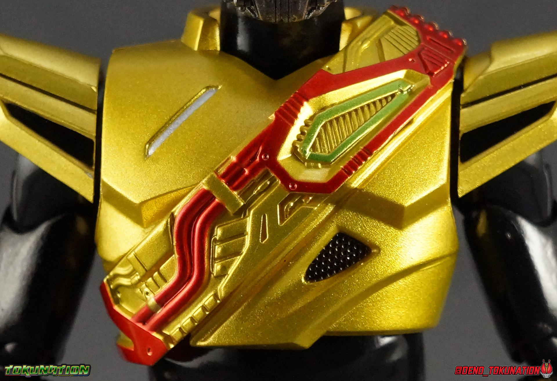I've patiently waited for this bad boy to come in for a review and gallery and I'm overjoyed to have him now. One of my favorite hero designs ever redone as an irredeemably, purely evil, villain? Sweet sweet gold paint? AND it was a retail release?? You better believe I'm excited to share this gallery of S.H. Figuarts Kamen Rider Gold Drive! Packaging The last 7 releases from Kamen Rider Drive came out between October 2015 & July 2016, and they were all web exclusives. None featured window boxes due to their web exclusive nature. But bucking that trend after a very long stretch is Gold Drive, which is a retail release! Gold Drive employs the exact same packaging as the original Drive Type Speed. This is a very common box design at this point, it began with Drive but has actually been carried over to Ghost as well, so no real surprises. Just new stock photos and a Banno Tablet face on the top right corner of the box. The box obviously romanizes the name as "Gord Drive" but given his color scheme and context we obviously know the proper name is Gold Drive. R's & L's are often flipped when going from Japanese to English. Main Figure This figure is a straight up repaint of the Drive Type Speed Mold but with a Proto-Speed Tire/Archetype Gear from Kamen Rider Proto-Drive. As such this is our 3rd outing with this mold, and a 4th is on the way with the soon to be released Zero Drive. At this point if you've handled any version of the Type Speed/Proto/Gold/Zero body, you know what to expect, excellence. Once again I want to emphasize that the Drive Type Speed mold is one of my all time favorite S.H. Figuarts. It's a fantastic figure, so by extension Gold Drive is fantastic. He's primarily painted in a gorgeous shiny gold finish that really stands out from the glossy black parts of his undersuit. He stands out very much in any display, in a good way. The paints apps on this release are just as strong as the previous 2 iterations of the mold, aside from one minor complaint, the tire. The "Archetype Gear" as it was know on occasion has some great detailing and the gold paint makes it all really pop. But the front of the tire should have a more significant green detail on the upper right. You can see it on the figure, but its very muted. It should be bright, like almost neon green. Unlike the other versions of the mold the Banno Driver doesn't feature many paint apps, but as a mostly black repaint that's to be expected. Physically the driver is unchanged from the other versions & like them it's removable, very fitting for recreating evil Banno moments. The face of the driver itself can be removed exposing the cylindrical part that displays Banno's facial expression & technically Tire Koukans. From the ground up this figure was designed for cross compatibility with future Shift Car/Tire sets. However the Proto/Archetype tire deviates from Type Speed at this juncture. It can't be removed without some degree of customization or the possibility of damage. So still, unlike the Type Speed's which could come apart to allow for Tire exchanges, Gold Drive's tire can't. The basic structure of his body would allow for it. But the tire has been molded as one piece. I've seen plenty of pictures where people have taken the time to pry it off. I'm just not interested in damaging my figure over it. The Shift Brace on the left wrist is identical to a normal one but with no Shift Car present. Gold Drive doesn't have or need one to function. Likewise there is no Shift Car holster on the right hip like there was on Type Speed & Proto Drive. Since Banno doesn't use Shift Cars he doesn't need the holster either. These small removals don't add up to much tooling or parts cost, but I wish the accessory count could have gone up because of them. Last but not least I want to talk about Gold Drive's head. Which is again, the Type Speed head done up in brilliant gold with a blood red visor. It just looks so so good. These colors just do not disappoint, a totally heroic design with these colors just looks deliciously evil. I'd gladly take this color scheme on other riders too, like maybe Decade or Hibiki. Finally I just want to remind everyone how fantastic this figure's articulation is. It's every bit the same excellence as Dirve Type Speed & Proto-Drive. Accessories Sadly this is where Gold Drive falls massively short: 1 - Banno face plate. Granted, Banno only ever had the 1 expressionless face when he was a tablet, and that carried over to his life as a Driver. But this feels a little slim is all. You can remove the Banno Driver and swap out the standard blank black one for this. 4- sets of additional hands. That's actually double the number of hands that Drive Type Speed & Proto-Drive came with. They had 2 sets each. Gold Drive includes recolors of the hands for the Door Gun that came with Drive Type Technic as well as the Handle Sword hands that came with Drive Type Wild. These are intended to use with the weapons that the numerous Drive Mach & Chaser figures came with. But he sadly comes with no weapons of his own to hold. That's the biggest letdown of this figure. His special Gold Conversion ability allows him to steal the weapons of other riders that haven't been treated to resist it. Seeing as there were no shift cars or holsters included with this release I'd have been happy to pay extra to at least get like a Zenrin Shooter or Door Gun or just something with him. Gold Drive's whole thing is that he steals weapons. You can borrow them from other figures, but that's just not the same. I also wish he'd come with a split in half driver to replicate his death, or maybe a Banno tablet, but oh well. Final Thoughts As with any Drive release I'm really really pleased. The Type Speed mold is still the strongest of the numerous Kamen Rider Drive releases. While S.H. Figuarts Kamen Rider Gold Drive doesn't particularly build on that in any way, it still embodies the best qualities of one of my favorite figuarts. Just with a little