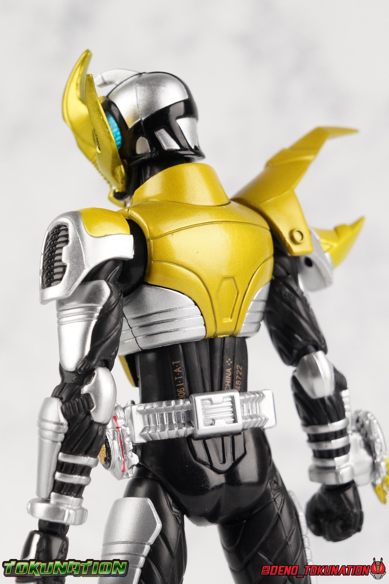 With Shinkochou Seihou releases in full swing, particularly for Kamen Rider Kabuto, I thought it was time we went back to take an extensive look at the trio of new riders that were introduced in Kabuto's film. Exclusive to God Speed Love, each of the 3 riders, Hercus Ketaros & Caucasus, has their own allegiance to one of the various future factions of ZECT. And even though ultimately each of them were sacrificial lambs for Tendou's path to the past, they all had particularly strong designs. We'll focus on each briefly below, be forewarned that the mold each of these figures uses as a base is the original Kabuto/Dark Kabuto mold, NOT the Seihou release. These are the original releases, they are quite dated, they do still have many faults of that original mold. Faults that most of the releases in the original Kabuto line suffered from. I won't focus on their functionality for too long as that mold doesn't really have much to offer in discussion anymore. Post #1 will focus on Hercus & Ketaros while Post #3 will primarily focus on Caucasus. If you'd like to hear my thoughts on this older body mold please feel fee to thumb through my original release Gattack & Dark Kabuto galleries for an idea. Packaging Each of these figures hails from an era of S.H. figuarts when gray scale plain boxes were the norm. So it's no shock that the packaging is incredibly boring for each of these figures. Main Figures Hercus: We'll start here with the silver Hercules Beetle themed Kamen Rider Hercus. A pretty basic repaint of the original Kabuto mold, Hercus does feature a new head and right shoulder. The new shoulder reminds me more of a Rhinoceros beetle than his actual head does, but I do like the double pronged nature of the heads' design. One large horn striking forward from the forehead, and a small upward pointing blade from the chin. While not the most exciting of the 3 new riders, it has a uniqueness all it's own. Aside from these changes Hercus also has a remolded right wrist which now has a brace and port for the included Hercus Kabutech Zecter to attach. Accessories: 2 sets of additional hands, 1 Hercus Zecter, and 1 ZECT Kunai Gun (gun mode). That's pretty lite, but also quite standard for the time of his release. I can't recall any of the original Kabuto riders actually including both the Kunai Gun and it's actual kunai mode. Technically he can wield it as the axe form too, but it's not quite the right shape or size for that. Ketaros: Next up we have the rust brown Centaurus Beetle themed Kamen Rider Ketaros. Another basic repaint of the original Kabuto mold, Ketaros does feature a more elaborately molded new head than Hercus. The new shoulder is identical to the one on Hercus, just with different paint apps. The new head however is a vast departure, I get the impression of dragonfly & scorpion combined in his visor design. It really is something else. The way that unique part splits the compound eyes is pretty striking, it's much less safe than most of the Kabuto rider form helmets were. Not exactly my favorite of the 3 movie riders, Ketaros is still a nice departure from Hercus' blandness. Aside from these changes Ketaros also the remolded right wrist which now has a brace and port for the included Ketaros Kabutech Zecter to attach. Accessories: 2 sets of additional hands, 1 Ketaros Zecter (a repaint of the Hercus Zecter), and 1 ZECT Kunai Gun (Kunai mode). That's pretty lite, but still standard for the time of his release. My guess is that he includes the Kunai mode of the kunai gun simply to differentiate Ketaros a bit more from Hercus. And that actually does help some. Caucasus: Now we arrive at easily my favorite of the 3 movie riders, the golden Caucasus Beetle themed Kamen Rider Caucasus! While still not a huge departure from the original Kabuto mold, or in fact the other 2 movie riders, Caucasus somehow winds up as my favorite of the 3. He features the same remolded shoulder as the other 2, with different paint apps again. And he also features another fantastic elaborate head. Ketaros was really interesting looking, but Caucasus almost appears to have a giant mustache. Which is somehow way more awesome? I also really like how the blue compound eyes offset the gold armor. Each of these molds carries about the same weight personality wise, but this one some how squeaks out as my favorite. Like the others his right wrist has been remolded with a new brace to accommodate the included Caucasus Kabutech Zecter. Accessories: 2 sets of additional hands, 1 Caucasus Zecter, 1 Hyper Zecter, and 1 blue rose. Even though Caucauss doesn't even include a simple repack of a weapon like the others do, he really comes with all he needs. The signature blue rose he's seen with in the film is a fantastic touch, and the Hyper Zecter is a must. Final Thoughts I have to say that even though these are all based on a pretty inferior mold, these figures still hold up decently. Obviously they're a bit undersized to scale correctly with today's line of Shinkocchou Seihou riders from Kabuto, but they can get the job done on a budget until the real deal comes out. If you see the trio cheaply I'd recommend picking them up to fill out a display at least. Kamen Riders Hercus, Ketaros, & Caucasus are worth that at least. But I'm also a huge Kabuto fan, the movie especially really worked for me. Often times people site Den-O as the first time that a Kamen Rider theatrical movie directly impacted the plot of the TV series, but really, it's Kabuto. If future Tendou hadn't managed to defeat Caucasus & steal the Hyper Zecter, as well as travel to the past, the original TV series would have never happened. Without this alternate future that's actually a prequel, the show wouldn't exist. And I love that. That's probably where a huge chunk of my attachment for these 3 designs comes from as well. But enough of me pontificating. Check out the full gallery below and let that be the deciding factor for you.