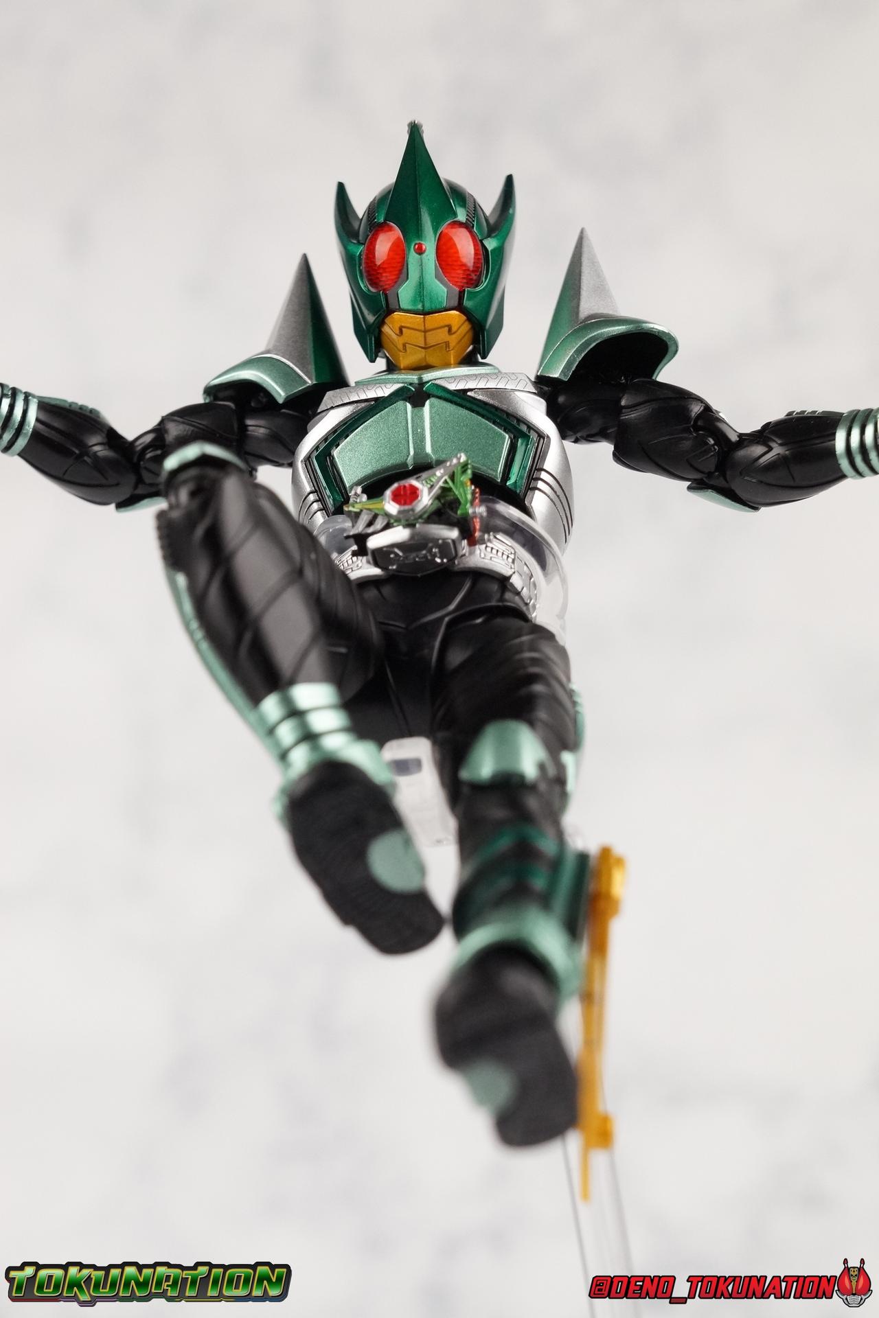 Sou Yaguruma was once the top dog of ZECT, commanding legions of ZECTroopers as Kamen Rider TheBee. The advocate of "perfect harmony" would soon be humbled however by Souji Tendou, and begin walking a darker path of self-loathing that eventually (and inexplicably) lead him to his new identity as Kamen Rider Kickhopper! Now Yaguruma is the latest addition to the Shinkocchou Seihou premium renewal line of S.H. Figuarts! So let's dive into our review of the figure. Packaging That standard slipcover packaging of Shinkocchou Seihou returns again. I promise I really appreciate the ease of access this kind of packaging provides. I really like this design more than a standard figuarts square box, but they've gotta start spicing things up. The one monotone image across the front of the box is getting rather boring. The presentation is nice but it's starting to fall flat in the face of more colorful and creative mainline releases like those from Ex-Aid is all. Main Figure Just as with Kabuto, Gattack, & Dark Kabuto before him, Kickhopper is an overwhelmingly needed update to an outdated and obsolete figure. The original release was plagued by the now standard QC issues of the original Kabuto line. Especially with those bowed legs. I'm happy to report that Seihou Kickhopper is the perfect successor to that original release. As with my last couple Seihou galleries form this series, you'll find a lot of similar passages in my review, it's just unavoidable when these figures share the same basic body and tooling aside from a few key areas. But I'll definitely zero in on the differences with this one. To start, the most iconic thing about Kickhopper is of course the Anchor Joint weapon attached to his left ankle. This unique item not only gives Kickhopper the 'jump' in his Rider Jump, but packs all the power behind his Rider Kick. It's also the most improved thing about this release. On the original figure it was a static accessory, permanently fixed in placed. This go around however the Anchor Joint is actually jointed and can be slid down the shin with the blade fully extendable to properly recreate a Rider Kick. The style of hips originally implemented in this mold provide a wide and balanced motion that allows you to replicate all of Kickhoppers most iconic poses & attacks. Though I do still think any standing kick looks pretty goofy in figure form. I would say the hips are limited only by their design as they do impact the waist assembly a little more prematurely than I'd like. But it's undeniable how versatile they are compared to many figures. The Hopper Zecter is really nicely detailed, especially when compared to the original. The details are sharp, the paint apps crisp, and it's even removeable. If you flip it around, the backside is also (properly) fully painted in Punch Hopper colors. It does pop off the buckle rather easily but it just looks so good. And while we don't have moving pectoral plates or flexible chest armor like with Kabuto & Dark Kabuto, Kickhopper's design is still pretty smooth, albeit a bit more limited in the upper body area. But you also don't have to worry about the torso impacting the Zecter. The new chest armor is really really nice though, it looks like a perfect replica of the show prop with really subtle paint details I had never really noticed before. The arms are free of nearly all obstruction thanks to wonderfully hinged shoulder pads. They do tend to look a little unnatural in some poses and expose the joints beneath however. But the elbows and wrist provide the same great range of motion we've come to expect from this mold, one that's still holding up very well 3 years on. Lastly we look at Kickhoppers head, which is just spot on. The original suffered from it's disproportionate size to the body as well as some issues with length and width. I'm happy to report that this go around the head is the correct size relative to the body and also the proper glossy green. The mouth plate is a brilliant gold and the compound eyes really sparkle in the right light. As with his 3 predecessors, Shinkocchou Seihou Kickhopper really is the ultimate apology for the original release. And being able to FINALLY recreate my favorite moment from Kabuto, the Triple Rider Kick in Seihou form, is the ultimate treat. Accessories Not much here, but just what you need: 1- Hopper Zecter (open). This is the flipped version of the Hopper Zecter from Kickhopper's Rider Jump/Kick combination. After the moving parts that were present on Seihou Kabuto's Zecter years ago I was surprised that Seihou Gattacks' was a swap out part instead, and I'm surprised again that the Hopper Zecter is the same. It just seems like something that could have been engineered to work instead. I mean just look at the W Driver & Gaia Memories. 2 - sets of hands. These hands are a bit odd if you ask me. The open hands are a very stiff variety of open palm. They aren't very expressive at all. The other pair are the standard type of "holding things" hands, and they look almost perfectly shaped for handlebars on a Rider Machine. But the Hopper Bros had no such bikes, nor any weapons they would have held. So these hands are a really pointless inclusion. The two glaring omissions that most collectors will notice are undoubtedly items included with the original figuart. The ramen bowl as well as a personalized Tamashii Stage. The ramen bowl was a pretty hilarious and iconic accessory, signifying one of the goofier plots of the show. And while the stage isn't nearly as important, it was nice that the original Hopper bros came with them. As is the original figuart is so dirt cheap now you could pretty much buy it just for those accessories. So while it's a bummer they weren't included here, it's no great loss either. Final Thoughts That's 4 down and well frankly quite a few to go. With Hyper Kabuto on the way finally, is it only a mater of time before TheBee, Sasword, Drake and others finally get this premium treatment as well