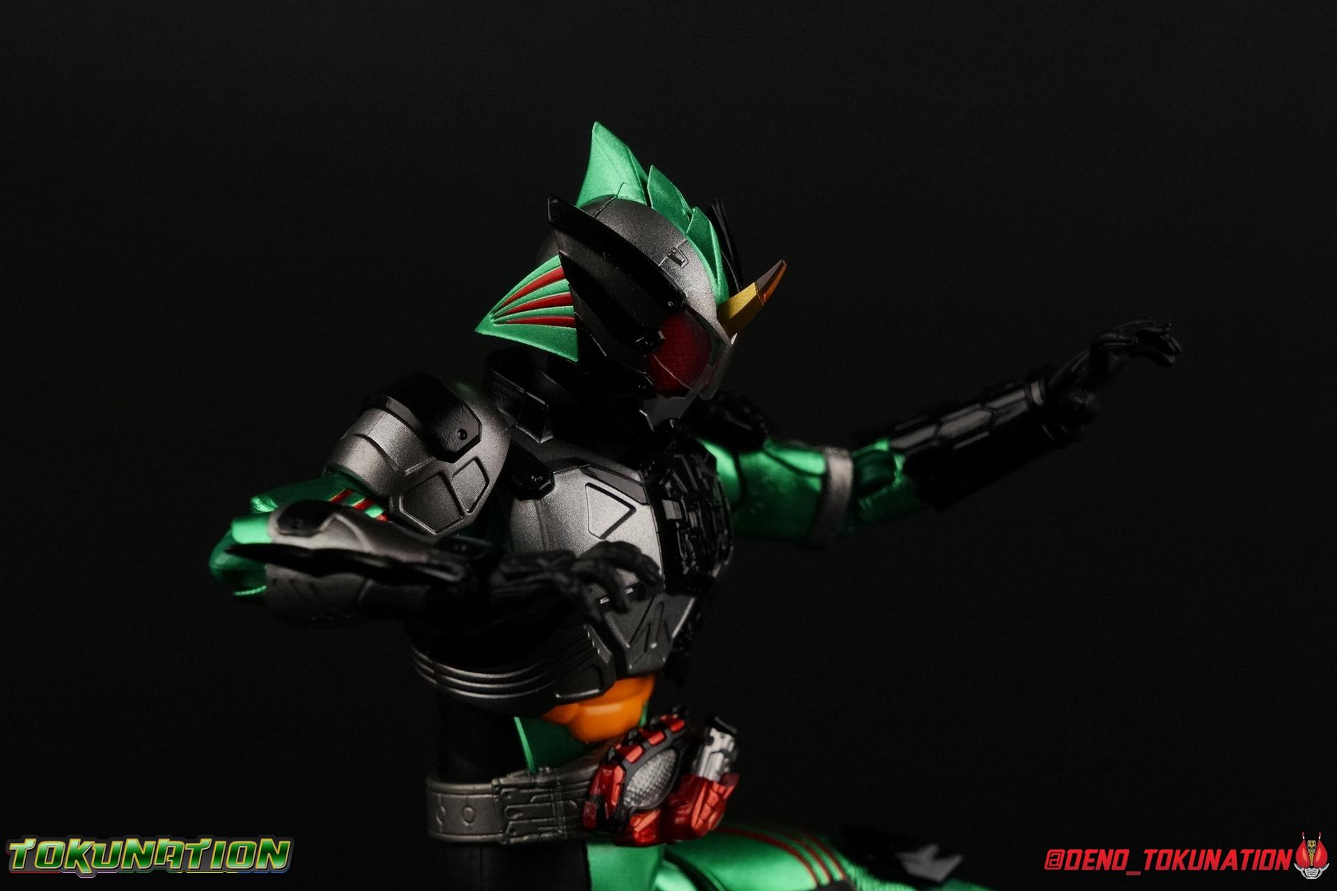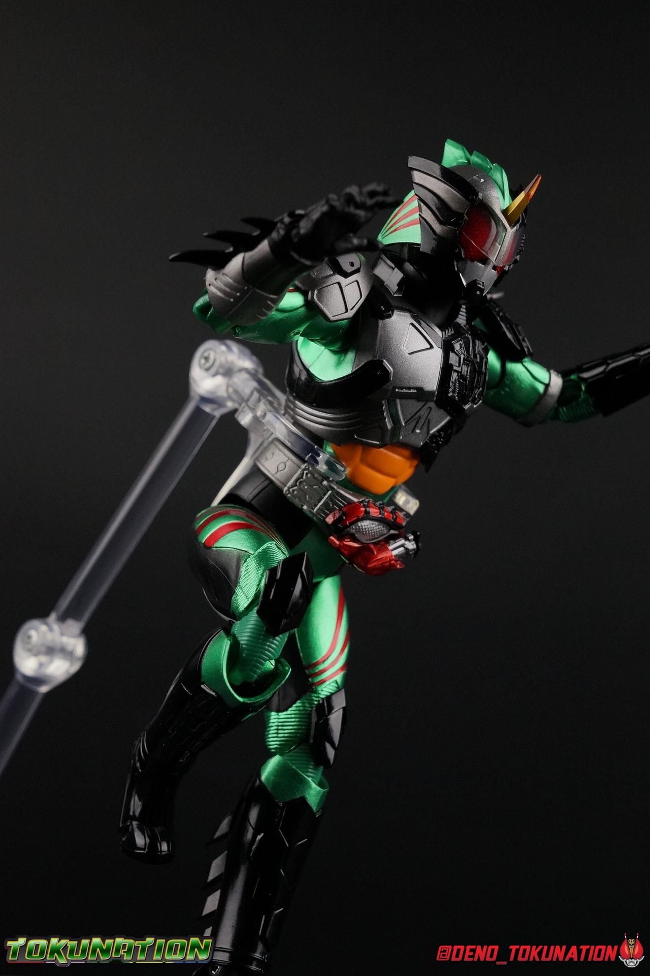 I still firmly believe in Amazon. After five S.H. Figuarts releases between the two 2 seasons of the popular Amazon Prime series, with 1 more on the way (Blind Alpha), I continue to be impressed with Kamen Rider Amazons. Each release up til now has been an entirely new mold, at least mostly, and each a completely new character. This release however is primarily one we've seen before, way back with Amazon Omega. S.H. Figuarts Kamen Rider New Omega takes the wonderful Omega mold and retrofits him with a version of the new cybernetic armored parts we first saw with Amazon Neo. Now, let's open our Amazons once again! Packaging If you don't know by now, Amazon.JP edition figuarts seem to be my new kink as I'll go to any length and pay any price to get them. So once again I've sprung for the Amazon.JP release of New Omega over the standard retail one. As usual this entails a brown corrugated cardboard style box meant to evoke an Amazon shipper. Other than that it's considerably larger than the retail releases' box due to the added exclusive accessories. Main Figure Oddly enough, despite being the 2nd rider introduced into the Amazons universe & being 1 of 4 in that world overall, Omega is the only rider to have received an upgraded form. It's debatable whether New Omega is even considered his final form because we just have no clue what to expect from the upcoming theatrical film. The point remains that arguably Haruka was the main character of season 1, most every major event leads to or from him. But with season 2 it's very obvious that Chihiro is supposed to be the focal point. So it's really odd that in a season that's primarily about the horribly broken father/son relationship between Jin & Chihiro, that Haruka is the only one of the 3 riders to wind up with an upgraded form. I know that's got nothing to do with the figure we're reviewing, but to me it's just kind of fascinating is all. Anyway, onwards! The New Omega body is one you're probably very familiar with at this point if you've been collecting with this series at all. The basic body used for it is that of the original Amazon Omega Figuart. But influence from the Neo Amazons Driver Haruka used in season 2 has added elements of Amazon Neo's design to his armor. Now the lower half the body is actually unchanged from Amazon Omega. From the abs down to the feet, these parts are identical. The legs are totally unchanged, even to the point that the knee pads still frustratingly pop off. They still feel dynamic enough to get the poses you want and thankfully this go around the thigh swivels have a bit less resistance which I like. The new bits start at the waist. The addition being the Neo Amazons Driver borrowed from Amazon Neo. The only difference this time around is that compound eye has been painted grey instead of yellow which makes it look a bit plain. As with Neo the Syringe/Ampule is non-removable. From here the lower torso/ab section is identical to Omega however new upper body piece has been sculpted. While similar in appearance to Neo's, New Omega's is a bit more slim, not quite as wide. New Omega's use of these cybernetic parts also features some unfinished techno detailing which was never quite explained in show. Though it greatly helps set Haruka's look apart. In the same sense the arms are very similar to the original Omega. From the bicep down the left arm is identical to the original release. The shoulder pad is a really cool new cybernetic part that's asymmetrical from the other arm. I really like the looks of it even if doesn't make much sense. The right arm features a new forearm based on Neo's, meaning it's removable so you can equip the Amazon Neo Blade arm. This arm also features an identical shoulder pad to Neo. The back of the figure has some similar detailing to Neo but it's totally different on closer inspection. The head is the final new addition. The broad strokes of it's design are similar to Neo, but it ultimately is a remold of the original Omega's. The right side panel is reused from Neo but everything else is an addition to the original head mold. I know not everyone loves the New Omega design but I just think it's gorgeous. Accessories Given that this form is directly lifted from Neo, it's probably not shocking that New Omega comes with the EXACT same accessories: 2 - sets of extra hands. A bit on the lite side unfortunately. The included pairs give you two types of open hands, one set that looks a little more savage but nothing special. I'm pretty bumed there's no holding things hands. Because that means in order to get New Omega on the Jungraider, you have to borrow the hands from the original Amazon Omega release. 1 - Amazon Injector/Ampule. These syringe like items are used by Chihiro, and later Haruka, to activate their Neo Amazons Drivers. The one in the Driver is not removable, and this accessory doesn't really serve much purpose to be perfectly honest. There isn't even a hand included that can hold it. 1 - Right Arm with Amazon Neo Blade. Rather than include the blade as a separate accessory that attaches to the arm itself, forgoing the difficulty of putting the grip in his hand. This forearm is actually pretty easy to replace and I appreciate this option rather than just a separate accessory. It's a straight repack of the blade arm that came with Neo. 1 - Set of Green Flame Effects. This set is a recolor of the popular Tamashii Flame Effects tailor made for New Omega. Amazon JP versions of Alpha, original Omega, & Neo also included sets of flames. Original Omega's were also green but with a white tint to them whereas New Omega's are just translucent green with no frosting to them. Amazon Sigma, as a Tamashii Web Exclusive, also included flames colored purple. Not too shabby. These Amazon JP editions always please me because of the flames effects. I would have liked more hands, the only real miss here is there's no Neo Hook. Amazon Neo didn't include one either. I'm sure the eventual Neo Jungrai
