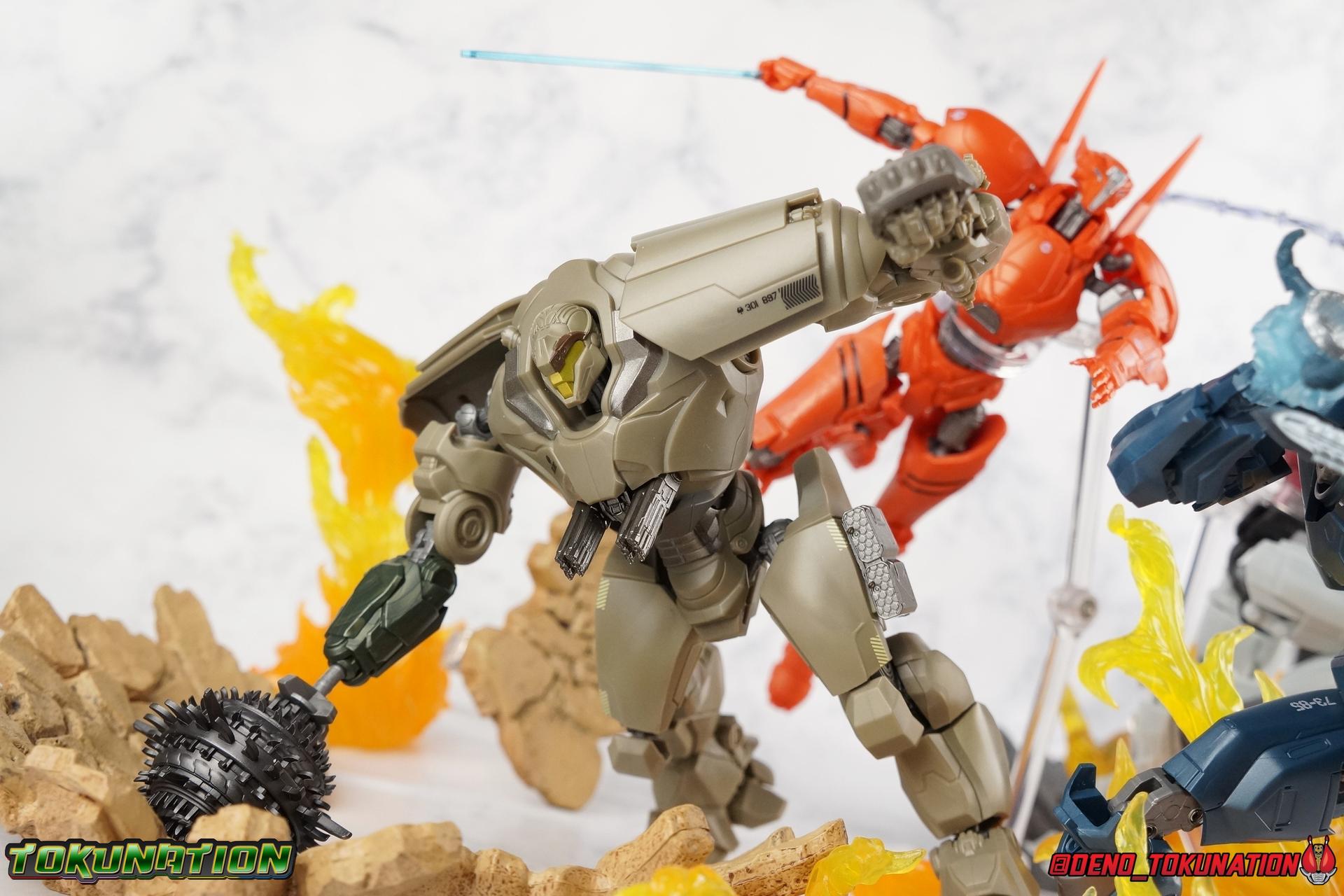Following up from our three previous galleries for Pacific Rim Uprising we cap things off this time with another two-for-one special, with Guardian Bravo & Saber Athena! Two of the most advanced Jaegers in the PPDC fleet, Bravo embodies the bulk and power of it's predecessors and improves on the chain sword melee weapon with it's own electrified Arc Whips. Saber Athena meanwhile is the newest and fastest Jaeger to date. Built for speed and finesse, Athena is a remarkable close range fighter. Can these two next gen fighters turn the tide of the war? Are they at least nice additions to the Robot Spirits line? Read on!