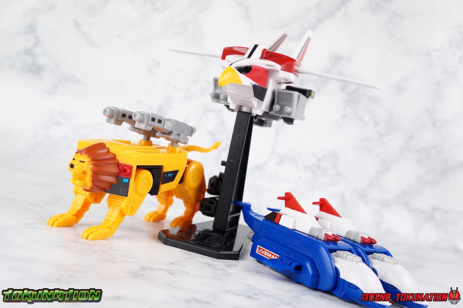 When Bandai originally kicked off it's now incredibly popular Super Minipla line, many fans were suspect about when or if it would move on from Zyuranger. Those releases of courses were made possible because of some demand from western fans and sold very well. But before that line up was even completed we got confirmation that Choujuu Sentai Liveman would be the new line's 2nd series to tackle! Now we even know that the next series up for the treatment is Ninja Sentai Kakuranger! What we're here to look at today however, is what Bandai's brought to the table for Liveman with the Super Minipla Live Robo! ** This thread is broken down into 5 full posts. The review portions will be broken down with each post as well. Scroll through to the one you want to see at any time and enjoy the pics along the way! Now, some preface about what's so "super" about Super Minipla. Traditionally, Minipla have always been a nice cheap alternative to the big DX mecha for kids. These are inexpensive model kit representations of their favorite giant robots that approximate the mecha's looks quite well. Minipla have been produced in one form or another for practically as long as sentai has had giant robos in it. Though the complexity and quality of the main Minipla line we see today, really only began to take shape in the early 2000's, around Dekaranger. Minipla before that era were largely not poseable, only sparsely accessorized, and often gang molded in incredibly simple colors, often missing the mark of the actual suits. In the last decade or so though they've become quite a bit more complex, striking proper balances between show accuracy and playability. But Super Minipla, is a whole different ball game. This line revolutionizes the idea of what Minipla is by making it a high quality and fully complex collector's line. Dedicated to as close to show accuracy as possible, to re-creating transformations as close to show model as possible, and to giving collector's super poseable mini representations of DX toys that would otherwise be impossible to afford. Super Minipla has also covered many things not relating to Super Senai from anime such as GaoGaiGar, Xabungle, Ideon, and more. Essentially this line exists to allows many collectors the chance to own mecha that haven't been available for decades as DX toys, and whose original Minipla are so dated now that they wouldn't even begin to be enjoyable. By tackling these types of figures for Sentai, Bandai has practically struck a gold mine. Collector's are nearly guaranteed to buy poseable and affordable alternatives to toys they don't own but want to. It's genius really. Also, I don't paint or panel line or do anything outside of what the stock instructions give me for model kits. I like to straight build everything, that's just the way I am and I'll always be. If you've ever seen Gundam Build Fighters, think of me like Straight Build Shimon. It's just my thing. Part 1: Packaging Where standard minipla releases will come in case assortment waves with duplicate parts and such, Super Minipla comes in a full series case. Each is divided into an exact number of boxes to complete one full set of the robo you've bought. In the Live Robo's case, that means we get one complete 3 box set packed inside one display shipper. Traditionally a retail store would open a case of standard Minipla and sell each individual box for a set retail price, often only a few hundred yen. So kids could pick and choose which pieces they wanted or needed to finish their mecha of choice. With Super Minipla, this new distribution means you can just buy the whole display and get one complete toy like that. You can still see the perforated markings on the side of the Live Robo Case where it can be opened to sell these components individually, though that won't often be the case with a set like this. The shipper case is just a black & white version of what packaging art we see featured on each of the individual boxes. So it's nice to pull those out and see just how much the color pops after having seen the outer case. Each of the individual boxes is identical save for a tiny number on the top flap of the box denoting which Machine parts it contains. The back side of each box shows off half the combined form of Super Live Robo, a really cool little extra since the individual boxes for the separately sold Live Boxer set, features the other half of this combined form. Each box can be torn open withe the perforated edge on the top or you can just pull the glued flaps apart like I have. It's all in whether you care to keep the boxes or not, I do keep them. Each box contains the instructions needed to build each component of Live Robo and transform it from it's Animal Form to it's piece in the Live Robo Combination. Each box also contains the infamous Minipla Candy. Super sweet and tart white candy in the shape of a clover that's been included in Minipla for as long as I can remember. Honestly I've always liked eating them. Next up, Live Machines!