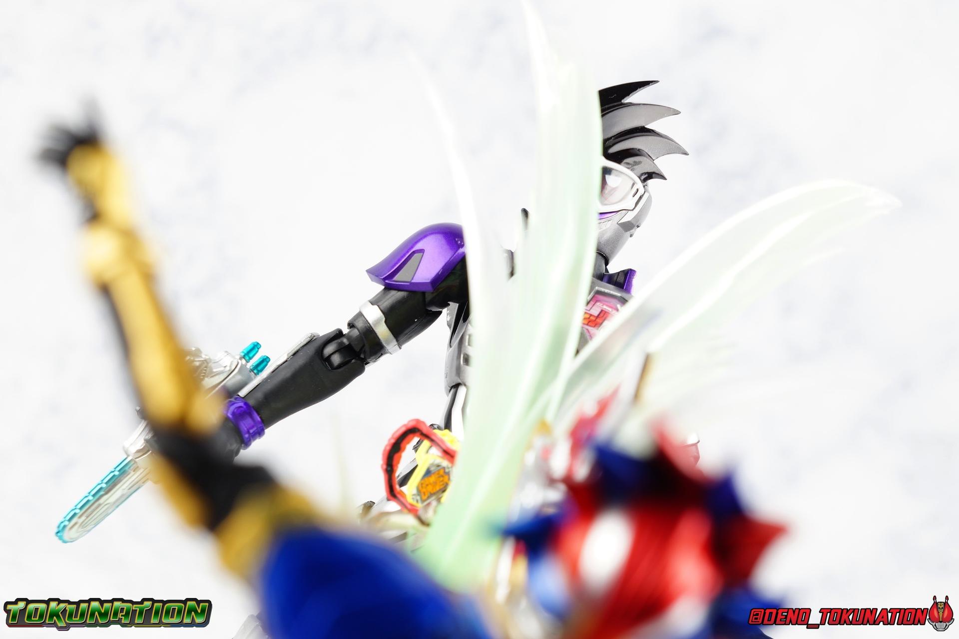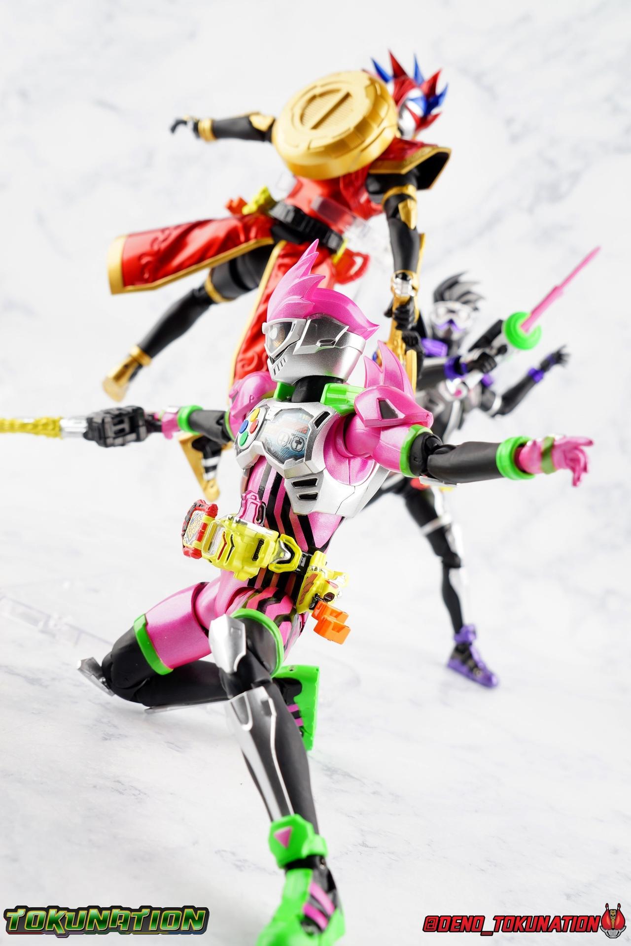 We've previously taken looks at the exceedingly popular GenM Level X/Dangerous Zombie and GenM Level 2, but finally Bandai has recreated Kuroto's most important form. The one that represents not only his return to life, but also his (temporary) shift to side of our heroes. This form represents the character's popularity itself even. Having been brought back from a pretty final death, and worked back in as an integral part of the winning side. It's safe to say that although this is not his most powerful form, this is probably GenM's most important one. So let's take a look at just how S.H. Figuarts Kamen Rider GenM Action Gamer Level 0 has turned out! Packaging Unlike GenM Level 2, Level 0 comes in far more standard packaging. A box that fits right in with the rest of the Ex-Aid line. It's pretty standard stuff by this point. Main Figure This review is basically identical to that of my GenM Level 2 one. There are minor paint app differences between the two. The accessories will be the real departure so feel free to jump down to that section if you like. GenM Action Gamer Level 0 utilizes the familiar Mighty Action X body type we've come to know and love. A mold utilized for damn near every figure in the Ex-Aid subline. This mold brings with it all the meticulous molded details and paint apps we've previously seen before. Much as with GenM Level 2, Level 0 is just lavishly executed. From the ground up this body type is a sold build. Physically I still nitpick the ankles on this mold, as the slight limitations to them irk me, especially moving forward. And getting GenM into a good pose is a total necessity for his character. Kuroto was an incredibly expressive character, so poseability is paramount. You really have to work with these feet, but they can get the job done. The knees have a great bend that helps add to the general athletic platformer theme of the figure. Much like with GenM Level x, I take issue with some sloppy paint flecks around the silver striping on the legs. There are plenty of flecks on the thighs and minor defects that are an annoyance on an expensive event exclusive such as this one. The Gamer Driver for this figure is the same standard one we've seen a countless number of times now. I still think it's an incredible to-scale replica. The Driver handle can flip shut, thus hiding the rider read out on the front screen as well, a read out which is identical to Level 2. The upper right of the driver has 2 slots for Gasshats. One is already attached in the form of the Proto-Mighty Action X Origin Gasshat. This one is black compared to the purple Proto Gashat that came with Level 2. As is standard, this is a dummy Gashat that can be reattached to any compatible Driver, holster, or Gashacon weapon. To the right of the driver, is a Gashat holster. There are 2 slots for extra Gasshats as well as 1 slot for a Critical Finish to be inserted. As with Ex-Aid, GenM's chest detailing is magnificent. And unlike a few other releases in the line, interior label used for the Rider Gauge is flawless. The paint apps on the outer layer are crisp and clear here for the most part as well. On the flip side of the torso is the deactivated Level 1 head. It's a bit stylized and shrunk down, but that's as it should be if TV CG magic could really work in toy form. Not to be forgotten are the arms, which admittedly only have one flaw that I'm truly bothered by, and that's the shoulder pads. Not because they impact the articulation, but because they pop off easily when fully extending the arms. This release however does have VERY finicky elbow pads which pop off with the slightest pressure. I had the same problem with my Ex-Aid forever ago but oddly not really with anything in the Ex-Aid line since. The wrists are solid, the elbows fully functional and the bicep swivels uninhibited & welcome as always. Finally that brings us to the head. This is where the most egregious paint issues are present. The white paint used for the visor is just really poorly applied, an issue that's been present on the last two GenM releases as well. Lot's of hazy overspray around the edges and a ton of flecks on the visor itself. Honestly the clear part of the visor looks dirty or scratched or just, somehow off. The "hair" of the helmet likewise has a number of paint flecks that really detract from it's overall look. Otherwise, I think the shape of the head is generally great, and the hair looks very solid. Lots of people took issue with this head on the original Ex-Aid release, but I've always thought it looked pretty spot on. I will say that this go around, the eyes are seemingly too far apart. Overall not a bad effort, just not terribly different physically or quality wise from the Level 2 release. Accessories GenM Level 2 came out as a Tamashii Nations exclusive a while back, and included with it the Shakariki Sports bike as a sort of bonus. The later Tamashii Web Shop release would not include this piece. That one large accessory is the big difference between the two releases, but Level 0 honestly comes with a lot: 3 - set of hands. 2 varieties of open palm hands and 1 set for holding things, like weapons or bike handles. Honestly they're a bit too narrow for the included weapons. 1 - Gashacon Breaker Blade Mode. Kuroto wasn't really seen much (if at all) using the Hammer mode, so they've opted to just go with the sword version for this release. The grip is just a bit too thick to be held well, but it works alright. Paint app work on a weapon like this could always be better as well. 1 - set of Bug Visor Zwei parts. This accessory is actually split into a few pieces though out of box it comes in the Chainsaw mode, although the saw form is not the standard mode of the weapon. The Bug Visor itself is just a plate in the center that makes up most of the mass of the accessory. It's attached to a long board with the saw extended on one end. The Grip Knuckle is likewise a separate part plugged onto this board. An alternate 