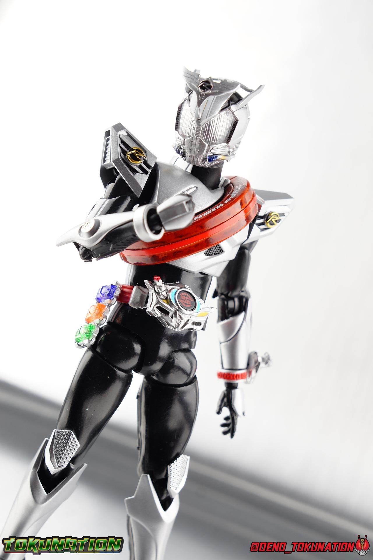 The tradition of the Hyper Battle Video and the rider forms exclusive to them dates all the way back to Kamen Rider Kuuga, though that special did not feature an exclusive form for him. To this date none of the various HBV exclusive rider forms (including the likes of Fourze RocketDrill States, Gattack Hyper Form, & OOO TakaToraGaru Combo) have ever been made as figures. No figuart has ever been produced of any of these wild exclusive forms. And they likely never will. But I wish they would. In a search to rectify that case for Kamen Rider Drive, I stumbled across a fantastic artist & customizer. @relgnadam on twitter. I've followed his blog for some time now, which you can find here, madangler blog. You may be familiar with some of his more recent projects such as re-creating Dark Drive's future ride the NEXTridoron or his brilliant work recreating fully poseable Cronus robes. Relgnadam is a professional, and his work is a labor of love. He tirelessly recreates figures and vehicles down to the most minute detail, with absolutely almost factory like quality. So I took it upon myself to contact relgnadam in the hopes of getting a commission. And I succeeded! Now I'm able to present to you a very special gallery of one of relgnadam's most gorgeous pieces of custom work, S.H. Figuarts Kamen Rider Drive Type High Speed! The Story And now a little background on the Kamen Rider Drive: Type HIGH SPEED! The True Power! Type High Speed is Born! special. Roidmude #27, with his Copy ability, is running amok hocking bogus copies of Televi-kun. And when there's a mischievous copycat afoot, you have to bring a little elegance to the fight. #27 has managed to make a copy of the Drive Driver & Shift Brace for himself, becoming his own bogus version of Drive, Imitation Drive, (represented in the gallery below by my Type Speed) on top of his counterfeit publications. And while his powers aren't quite as intense as the real Drive's he has enough force and sheer luck behind him to best Shinnosuke. So the Drive team comes up with a new plan and a shiny "new" Shift Car to go with it. What results is the luxurious Kamen Rider Drive Type High Speed form! With it Shinnosuke managed to best #27 in battle. Seemingly impervious to attacks, with added speed & power behind him, Shinnosuke thought he'd found his new high-class permanent form. As it turns out, Rinna & Mr. Belt actually took Shinnosuke on a little ride of their own, hiding from him the fact that High Speed was merely a repaint of Drive Type Speed with identical specs. Thus teaching Shinnosuke a lesson in overcoming his own mental limits, and making a broader bit of commentary on toy repaints. While this Hyper Battle Video was brief it's probably one of the more memorable ones I've seen, and it certainly has the most stylish new form for a rider that we've ever seen in an HBV. It's also actually the 2nd HBV special that Drive had, after Type TV-KUN: Hunter & Monster! Chase the Mystery of the Super Thief. Though that special didn't feature a brand new form like this one. The Figure Now as a custom figure, my review won't really focus the same way on the functionality of the toy as previous ones. I've reviewed the Drive Type Speed body several times over the last couple years. You can check out any of my galleries and reviews on the subject of this body type for a more in=depth review of the mold itself: Drive Type Speed Proto-Drive Gold Drive Zero Drive What I will say is that to this day I continue to absolutely love the Drive Type Speed mold. In any of it's variations it is an excellent toy. It's easily one of my favorite modern Figuarts. Even about 4 years on from it's first outing. It's stylish and well articulated, it's just a quality mold. And I have a lot of sentimental & emotional attachment to my own SHF Type Speed as well. Primarily because of how much I enjoyed the series itself, and just how many times I've busted it out of my display to feature in a gallery. With that in mind I sent off my original Type Speed that's been with me for all this time and galleries from Drive, to be upgraded into Drive Type High Speed by relgnadam. If you haven't seen the original post of the finished product on his blog, please go check it out. As with the suit used in the DVD special, Type High Speed is an extensive repaint & slight remold of the base Type Speed body. Any of the red paint or plastic has been stripped and replaced by a gorgeous silver finish that looks absolutely factory quality it's so nice. I don't think I can ever lavish enough praise on relgnadam's work when it comes to paint. There's something extraordinary about it. If you'd like to see a breakdown of how the new parts were molded & cast for this figure then you can check out this WIP post on Type High Speed. It's just incredible to see the amount of skill and effort that went into this! New parts include the head crest, shoulders, and tire. In the case of the tire, it was sanded down, smoothed out, and given a flat surface with no tread unlike the regular Type Speed. It's more of a slick glossy racing tire now and the paint work is phenomenal on it. Not to mention the incredibly nice High Speed decals Relgnadam custom designed printed and applied to it. The shoulders are entirely new parts, sculpted molded and recast by Relgnadam himself. Having seen the molds he created for them and the parts breakdown, it's hard to believe this was done by an individual. These parts when painted and detailed match exactly Tamashii factory quality. The Drive "R" crests on the new squared off shoulders are absolutely stunning and a real triumph of his skilled work. The head also features an elaborate new crest that once again was hand sculpted molded and cast, then finished to perfection. I'm honestly terrified that I'll be clumsy enough to break it when I touch it. But it's just so gorgeous. This part like the shoulders screams with creativity. I should also mention the new "diamond" rider jewel in Drives