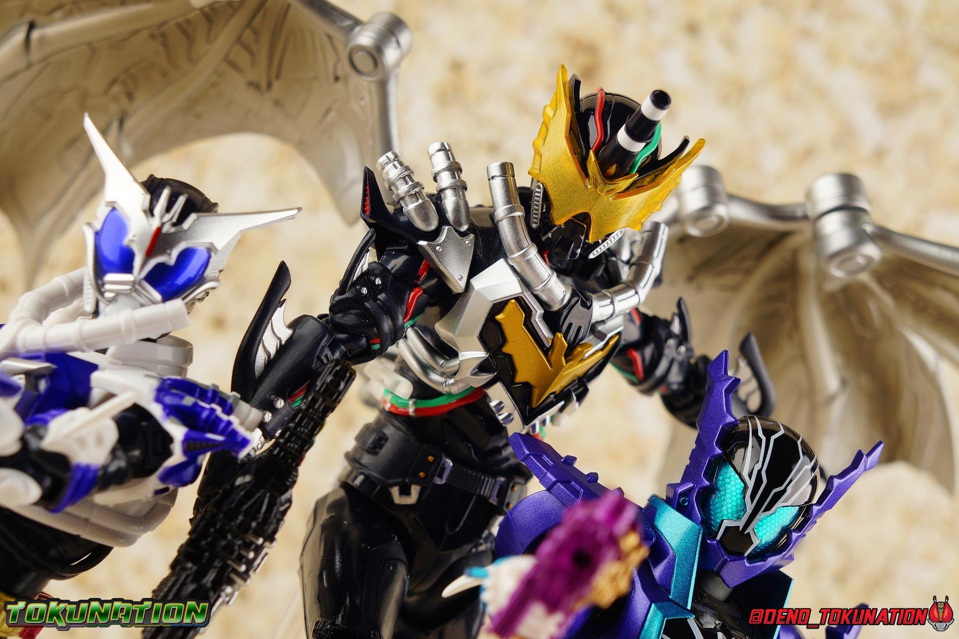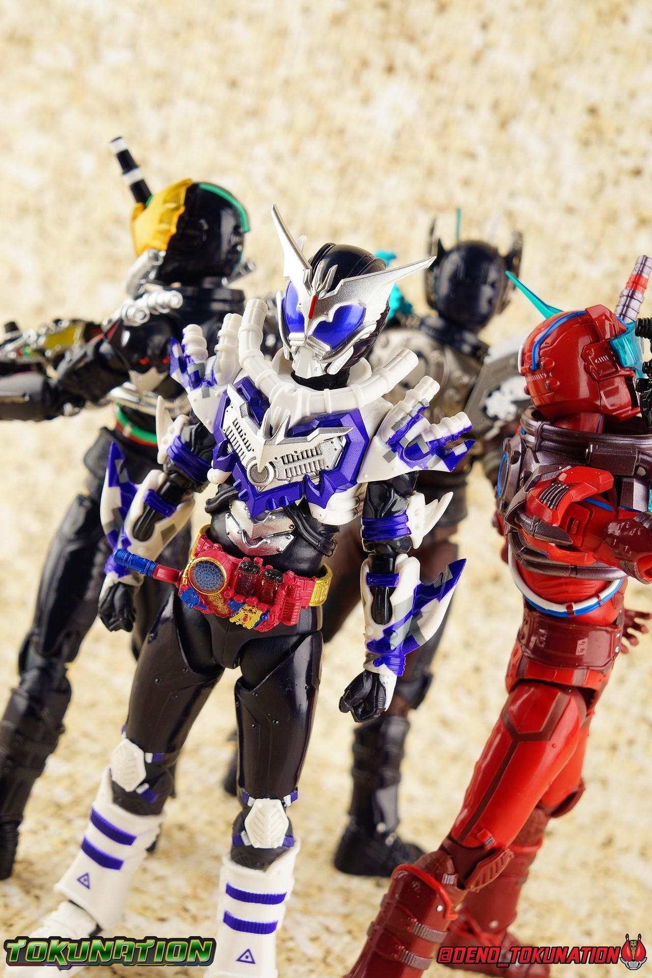 Utsumi Nariaki was one of the Nanba Children. Raised to be loyal to one man only, Juzaburo Nanba, he spent his life in service to his mentor. Loyal until the day Juzaburo was murdered, Utsumi faithfully served. But seeing his master's death at the hands of Kamen Rider Evol pushed him over the edge. With Utsumi's spirit broken, he was faced with the impossible option to take revenge, or serve Evol. Accepting the power of the Evol Driver and rejecting the pain of his grief, Utsumi is reborn as Kamen Rider Mad Rogue! Packaging As with practically all Build releases Mad Rogue has a pleasing two tone package design. Nothing's really changed aside from color choice and stock photos this go around. Main Figure The 4th times the charm right? If you're looking at Kamen Rider Mad Rogue and thinking that he looks pretty familiar, then you'd be right. This is the 4th outing so far of the mold at the core of this figure from Build's lineup. Previously we've seen a lot of this figure through Night Rogue, Blood Stalk, and of course Hell Bros. So you know what to expect out of a lot of this mold. That being said, I think this may be the best version of it released yet. Much like Night Rogue, Mad Rogue has an under suit that is ostensibly black, but upon closer inspection looks to be a dark dark blue instead. So far, Hell Bros is the only release that's used the brown suit parts. Now one of the few flaws I originally found with the mold, was the ankle design. Because of the way the cuff of the shin armor comes down around them, you do lose a small portion of movement in all directions. But the ankle ball is also designed in such a way that you can't really angle the feet outward properly. It's still a bother but it still works well enough too. Despite appearances, the bulk of the thighs doesn't impede leg movement either. As with the others, this figure can pose with the best. As before with this mold, I recommend you definitely pull the hips down far enough before moving them up, if you don't then the waist armor can dig some small grooves into the hips. The hips on this release are quite tight as well. This release of the mold also features the first driver attached to it, as well as the first release of Evol Driver itself. While the just announced Kamen Rider Evol will also feature this Driver, Mad Rogue is the first physical release of it in this line. A lavish repaint of the Build Driver in Gold, Red, & blue and features two new Full Bottles. The Bat & Engine Bottles. Both are removable as with any version of this mold and can interact with any accessory in the line that accepts them. The really pronounced difference with this release is of course the new molding and colors for the upper body. I should have mentioned the new white shin pads on the legs before, because they really help break up all that black as well, and tie it all together. While the upper body is hugely different, it shares so much with Night Rogue. Nearly all the parts are physically identical, but in a radically different paint scheme. And I can't be the only one who sees Mad Rogue and thinks he looks an awful lot like Transformers G2 Blast Off right? Anyways, the lower torso is the same part as what's featured on night rogue. In this instance the cables running around the ribs are left black, while the ab section is painted silver letting it stand out a bit more. The chest armor is really gorgeous. Basically the only molded difference is the new grill with the bat emblem that replaces the old gold bat on Night Rogue. But it's that stark difference from black/gold/silver to purple/silver/white that really sells how gorgeous this figure is by comparison. And I was seriously wowed by Night Rogue at the time of release. Mad Rogue has lot's of room to move in his waist and also has the same fluid movement in the upper torso as his mold predecessors. The arms are likewise identical molds, just with the new paint job. I have to say that I thoroughly enjoy the way the purple on white does look like a camouflage pattern. Again it's just amazing the stark difference that a paint job and a few new parts can illustrate. While the bicep swivel works wonderfully the elbow still can only hit about a 90 degree angle. Luckily this release does have the same great shoulder pads as Night Rogue giving him plenty of range that Hell Bros & Blood Stalk did not. The wrist joint is still a bit too close to the wrist cuff so you lose a bit of up and down movement, but ultimately the loss doesn't amount to much of an issue in the end. Finally Mad Rogue has a brand new head that takes inspiration from his mold mate & name sake Night Rogue. While still absolutely portraying a bat theme it's done very differently. Honestly this head has always evoked the look of Kamen Rider Saga from Kiva to me. Between the bat theme and the colors this rider as a whole reminds me of Saga or perhaps even Kiva-La. All in all this figure has turned out wonderfully and I think easily is the most striking and interesting use of the Kaiser/Transteam System body type we've gotten so far. Accessories As with any Build Rider worth their salt, Mad Rogue comes with everything he needs: 1 - Nebula Steam Gun. This is a straight repack of the accessory that Kamen Rider Rogue came with. Which is interesting given the the Hell Bros release included a purposefully different version of the weapon. This also marks the 5th release of this weapon across the line. Night Rogue, Blood Stalk, Rogue, Hell Bros, Mad Rogue. 1 - Steam Blade. A repack of the components that have been included with the Nebula Steam Gun, 5 times now. Use them as a stand alone blade, or the Nebula Steam Gun can still use them in the exact same way, combining to form the Nebula Steam Rifle. 3 - sets of hands. That's a set of open pose hands, 1 for holding the gun, and 1 for holding the blade. Everything you need! Given the late stage appearances of Mad Rogue, his arsenal was pretty focused, so this is a pretty much perfect