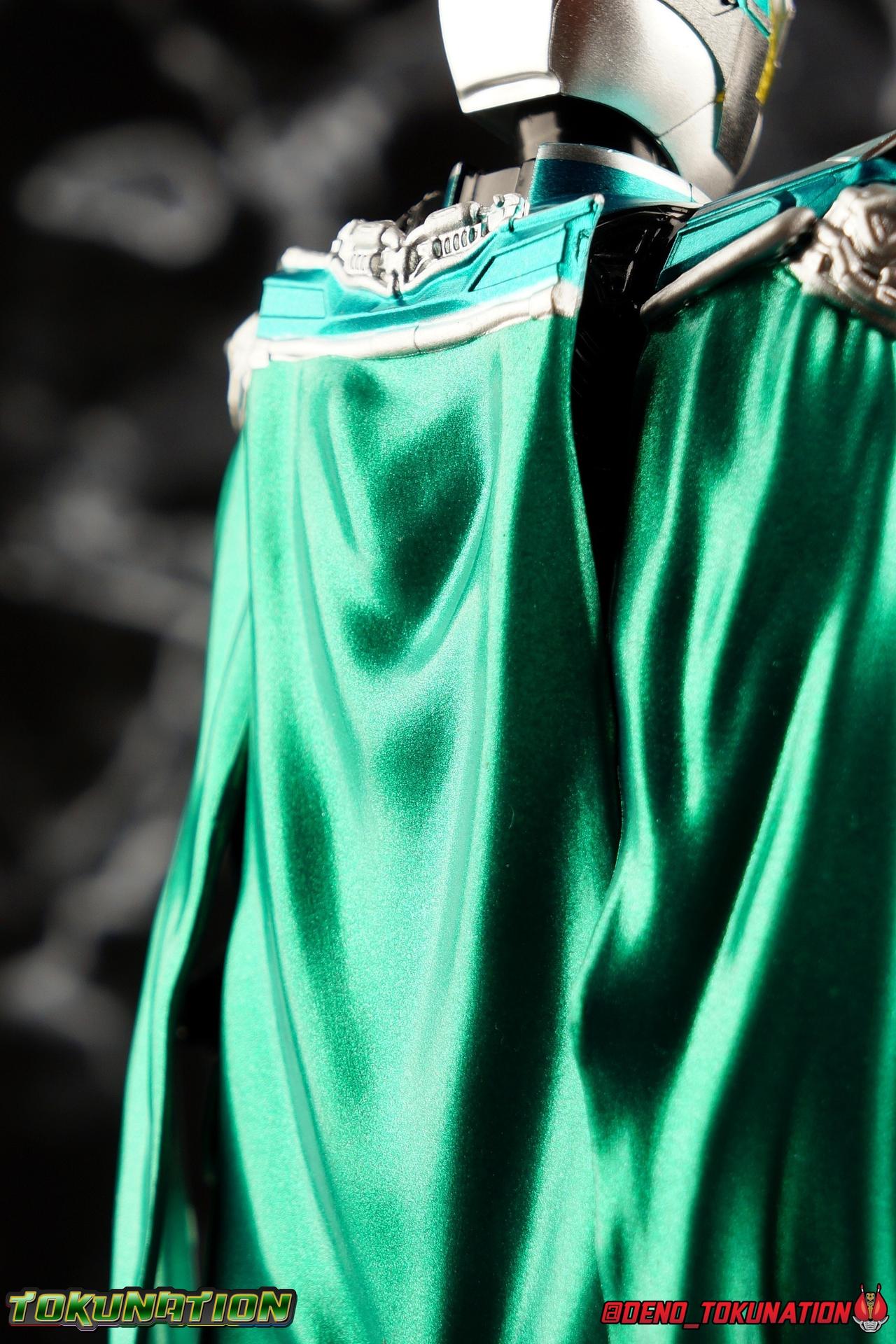 The evil organization MU wants to rewrite the world! Filling their ranks with revived brainwashed villains of Kamen Rider's past, their army grows each time they force Professor Crystal Peppler to perform this task. But to subvert their goals and weaken their forces, Professor Peppler has revived the weakest looking Kaijin he could think of, Brain, the Roidmude! Secretly though, the Professor knows one thing, how much Brain despises people like those in MU. Those who would crush individuality, who don't fight with all their hearts, the arrogant, the unpleasant. Those his master Heart would hate most. Mirroring the rebirth of Takeshi Hongo as the first Kamen Rider, Brain the Roidmude must become Brain the Kamen Rider! Packaging Weirdly enough, Brain doesn't have a "type". Drive's basic form is Type Speed, most of his forms have the "type" designation in them. Even Heart's two forms are called Type Speed/Wild/Technic & Type Miracle. But Brain is unique among the Drive/Banno/Brain Driver type riders in that he's just, Kamen Rider Brain. That may not be particularly relevant in terms of the packaging, it's just odd given my long relationship with releases from this series, that the designation isn't present on the box. The fun difference in the packaging here is that Brain gets his own unique logo, in the same way that Banno/Gold Drive did. Otherwise it's pretty standard stuff. Kamen Rider Drive popularized and standardized the slim style boxes the line as a whole has largely transitioned to. So it's fairly basic, but pleasant none the less. Main Figure In previous years I'd have pegged this figure as a perfect example of something deserving the Toei Hero Net exclusive treatment. Like Blade Broken Head or Gokai X'mas. As is it's mind boggling that a rider who appears only in two mini episodes and has a brief cameo in the Zi-O Over Quartzer theatrical film, got a figure at all. Kamen Rider Brain was a joke. Seriously, it was originally a joke by the character Brain, at the end of the Kamen Rider Heart V-Cinema. Flash forward years later and Brain actually got a 2-episode mini special and officially became the last new Kamen Rider to debut in the Heisei Era! And that's pretty wild. The entire backstory of this character, from a show that ended nearly 5 years ago, is wild. But the merits of the figure are what they are. Based around the always excellent Drive Type Speed mold that's been fielded numerous times for numerous forms and riders, Kamen Rider Brain is another true winner. It's been about 5 years or so since the mold's first outing and it's largely kept up with the times. It really still fits in well with more modern releases. Each time it's been repainted or remolded it's managed to look every bit as stylish as it did in a previous release. The Drive leg design is still really solid even 5 years later. Wide type feet with nice tight toe bends give you lots of play for posing. But it's really the flexible knees and sturdy inset hips that given Brain a flair for the dramatic. The big changes here are the colors of course, Brain has a variety of neon and pastel greens adorning his suit, as well as those new lavish draping cape parts. The ones that come into play with the legs are the sort of loin cloth hanging in the front, and the long cape hanging down from the back. Thankfully each of these parts is made of a soft pseudo rubbery plastic. They aren't rigid at all, so they're easy to maneuver. I can see why they aren't fabric, but a part of me still wishes that's what they'd been made of. As is, for more extreme posing, these parts add extra stability the figure wouldn't otherwise have so you can get him in some unique poses. I do worry about their durability over time though. Around the figure's waist is the aptly named Brain Driver. While of course it's based on the tried and true Drive Driver it largely borrows it's color scheme from the Banno Driver of Gold Drive. The read out plate can still be removed and swapped like any other Driver of the variety, though Brain's is unique and he wasn't shown to use any shift cars or powers in his brief appearances. Otherwise everything is physically identical, though there's obviously no Shift Car Holster this go around either. The upper torso features all the same armored components, unchanged from Zero-Drive, Proto-Drive, & Gold Drive. The chest armor is the same across all 4 as well as the Tire, which is a repaint of Proto-Drive's original Archetype Gear. Brain's tire is non-removable, and probably for good reason since his cape is attached to the back half, and it adds some weight to his frame. Again this is a soft rubbery material so luckily it can pose as needed. The torso as a whole still features some really great built in articulation that isn't really affected at all by the various new parts present. The arms are a bit of a mixed bag this go around though. Each features the familiar Drive style shoulder pad, but has a new raised brain sculpture on the outer edge of it. More to the point though are the large cape appendages coming out of each of them, styled in the same way as Brain's Roidmude form. While made of the same soft like material as the other capes, these feel much less flexible, and look far more awkward when putting Brain in action poses. They do also interfere with the back mounted cape a bit presenting some posing issues. You can usually work each of these parts around one another, but on occasion it's a bit of a pain. As always the elbow could use slightly more flexibility, and the shoulders some more clearance, but the wrists are versatile as always. And as a vestigial carry over from the Type Speed mold, Brain has a wrist mounted Drive Brace that he doesn't need or really use, much like Gold Drive. Though it could still accept Shift Cars if so desired. This figure culminates in an absolutely exquisite head sculpt. One that feels very very much in line with what Drive as a series has given us before, while still feeling