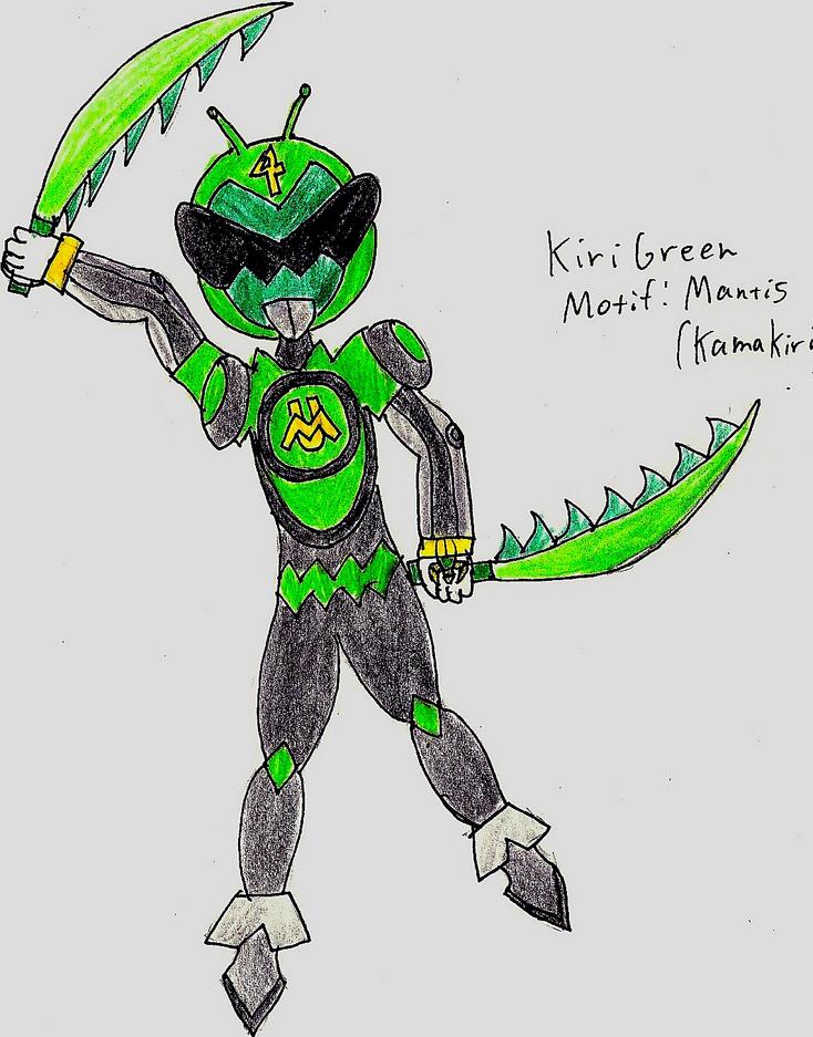 KabutoRed/Lilith Yamata- 18 yrs old, daughter of MythoRed and MythoViolet. It was under her request that her father make her and her friends the Mushinger gear after they had grown to weak to use their powers. Her hair is a mix of her parents, primarily purple with Red streaks. Like her parents, she can manipulate darkness and fire. Despite being based on a Kabuto Beetle, she primarily dresses up in Black Widow-themed clothing. GataBlue/Shingo Tenjou- 18 yrs old, Son of MythoBlue and MythoValkyrie. Like his father, he can manipulate water, and uses it to form blue wings similar to that of his mother. He inherited her blond hair and his father's green eyes. He's pretty superficial and will tend to argue with Lilith all the time. Motif- Stag Beetle. BachiYellow/Jakk- The only member who is not related to the Mythonger in anyway, Jack stole the Bachi gear to fight against the Venom Empire to save his sister. Eventually is accepted into the group, and falls for Lilith. Motif- Hornet KiriGreen/Jiro Hatake- 17 yrs old, one of the twin children of MythoGray and MythoPink. Jiro, like his father, has a strong ability to manipulate the Earth. He inherited his father's Gray hair, but dyed part of it green. He falls in love with a girl named Charlotte, unaware that she is really Kurogoke (Black Widow) of Venom. Motif- Praying Mantis AgehaPink/Hina Hatake- 17 yrs old, Jiro's twin and the daughter of MythoGray and MythoPink. Like her mother, she can manipulate the air and wind. She is the classic stereotype of the girly girl, but also inherited her mother's love of pranks. She inherited her father's gray hair, but dyed some of it pink like her mother did before. Motif- Butterfly