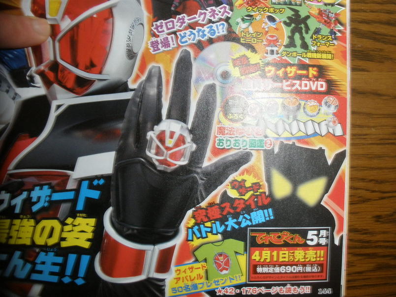 Future episodes will be giving us some insight on who Medusa was before becoming a Phantom. Spoiler warning ahead: Medusa’s true name is Misa. She is an old friend of Haruto’s from highschool and Haruto use to date Misa's sister. The Dance Ring will be featured in a special episode, and like the name suggests the ring will make both Haruto and Kosuke dance. The two will be borrowing powers from one another. The final scan shows a silhouette Wizard’s final form: Infinity Style! First revealed in previous Toy Catalogue scans Thanks to Tokunation member KRX for the heads up! SOURCE: Alpha Hero Shock Last edited by Kiryu; 02-25-2013 at 06:02 PM.. |