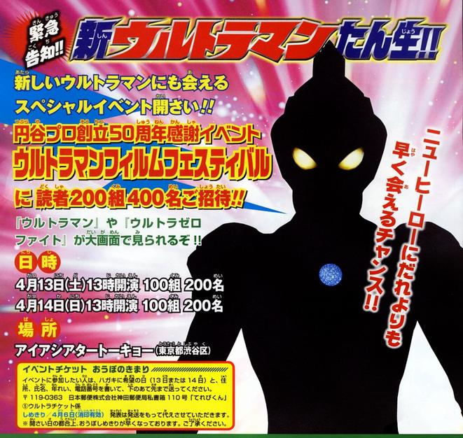 This year marks Tsuburaya Productions' 50th Anniversary. At a special event next month (April 12th to 14th) the company is expected to reveal a new Ultraman and possibly start off another new franchise.
