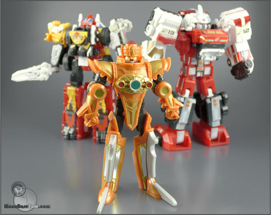 He's preassembled? Like the Geki Wolf I guess. He looks pretty cool. I wish he could actually be held by the mecha (in the same way Lian could be held by Fire Dagwon or his other forms).