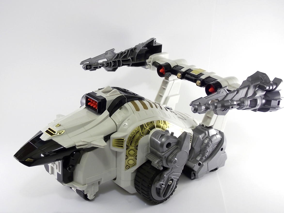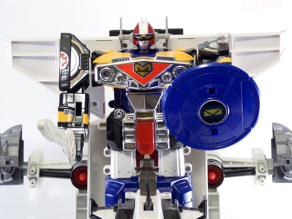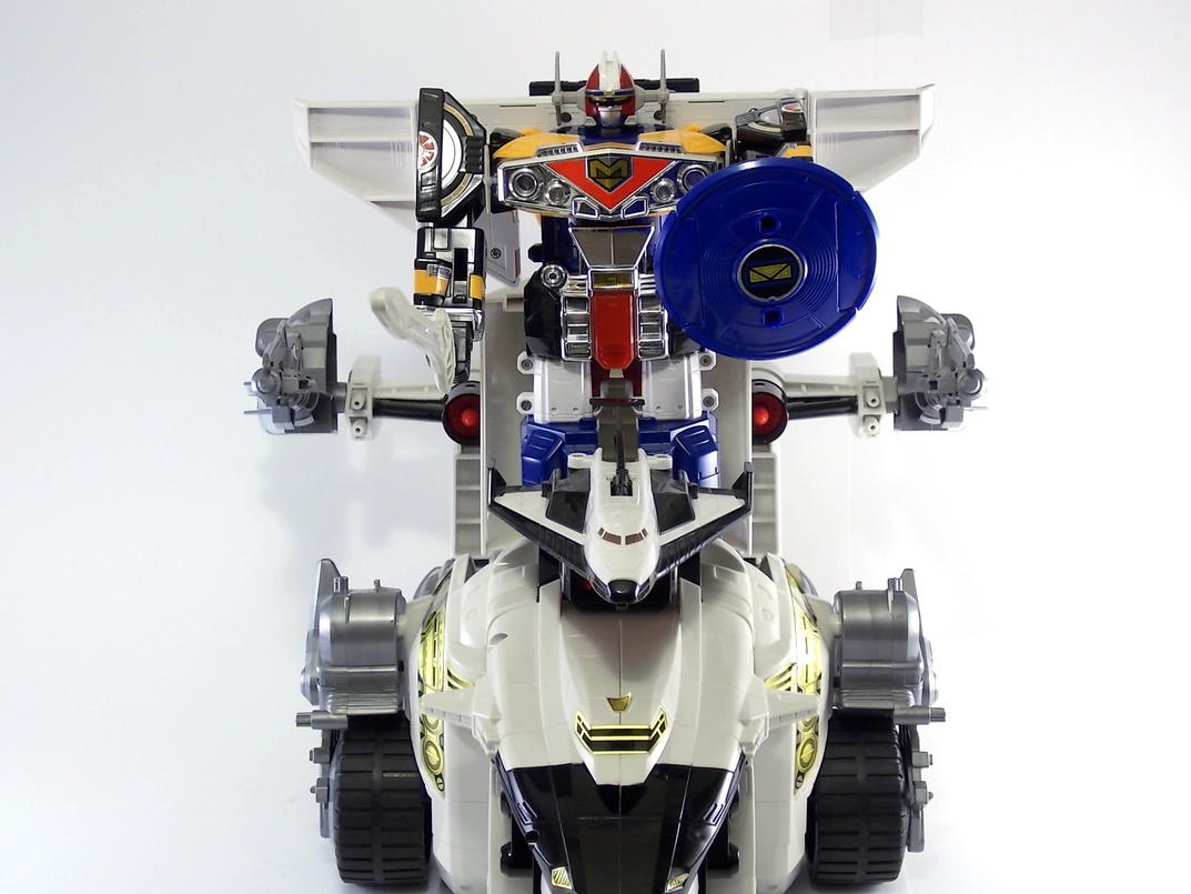 Tokunation.com is back with it's final tribute to Power Rangers In Space and this time it's a big one! Today we have a complete gallery the DX Silver Titanus figure, a rare piece that came out at the tail end of the In Space toyline. Rumor has it that Silver Titanus was originally meant to have a brief appearance in the shows final 2 episodes, Countdown to Destruction, for the epic final battle! It only has 2 official combinations, one with the Mega Winger, and one with the standard non-winged Mega Voyager. The others pictured here are just there for fun.