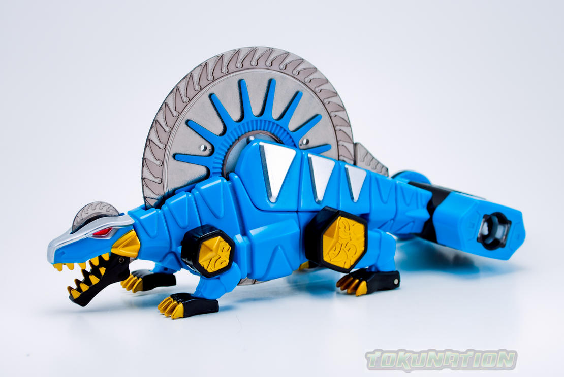 The Dimetrozord is one of five auxiliary zords used in Dino Thunder that can be summoned by either the Black Ranger or the Triassic Ranger. This zord can replace the Tyranno Drill arm and allows the Thundersaurus Megazord to perform the Dimetro Saw Blade finishing move. The Dimetrozord also forms the inner right leg of the Triceramax Megazord. The deluxe figure is approximately 8 inches long and has a spinning 'saw blade' gimmick that runs on the motor in the Tyrannozord. The U.S. release of the Dimetrozord was packaged with the Dx Dino Stegazord. Check out the 10 image gallery after the jump! Want TokuNation.com updates on the go? "Like" us on Facebook and follow us @tokunation on Twitter!! Last edited by conundrum; 07-08-2013 at 08:58 PM.. |