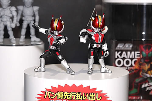 The Cybergundam Blog has posted new images of Rider Deforme figures on display overseas. Shown are some full color samples, as well as prototypes for upcoming figures. Some of the rider series represented include: