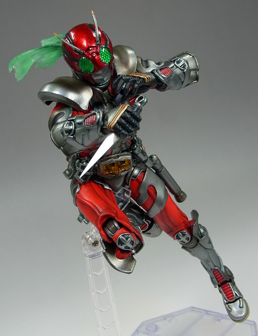 The ninja-like SIC Kamen Rider ZX figure has been released! Thanks to Gamu-Toys and Hima-Toy(thanks to TokuNation boards member Kiryu for the heads up!) we have images of this figure in and out of package! Beyond the intricate detailing this figure features over its onscreen counterpart, is a substantially expansive arsenal of weaponry.