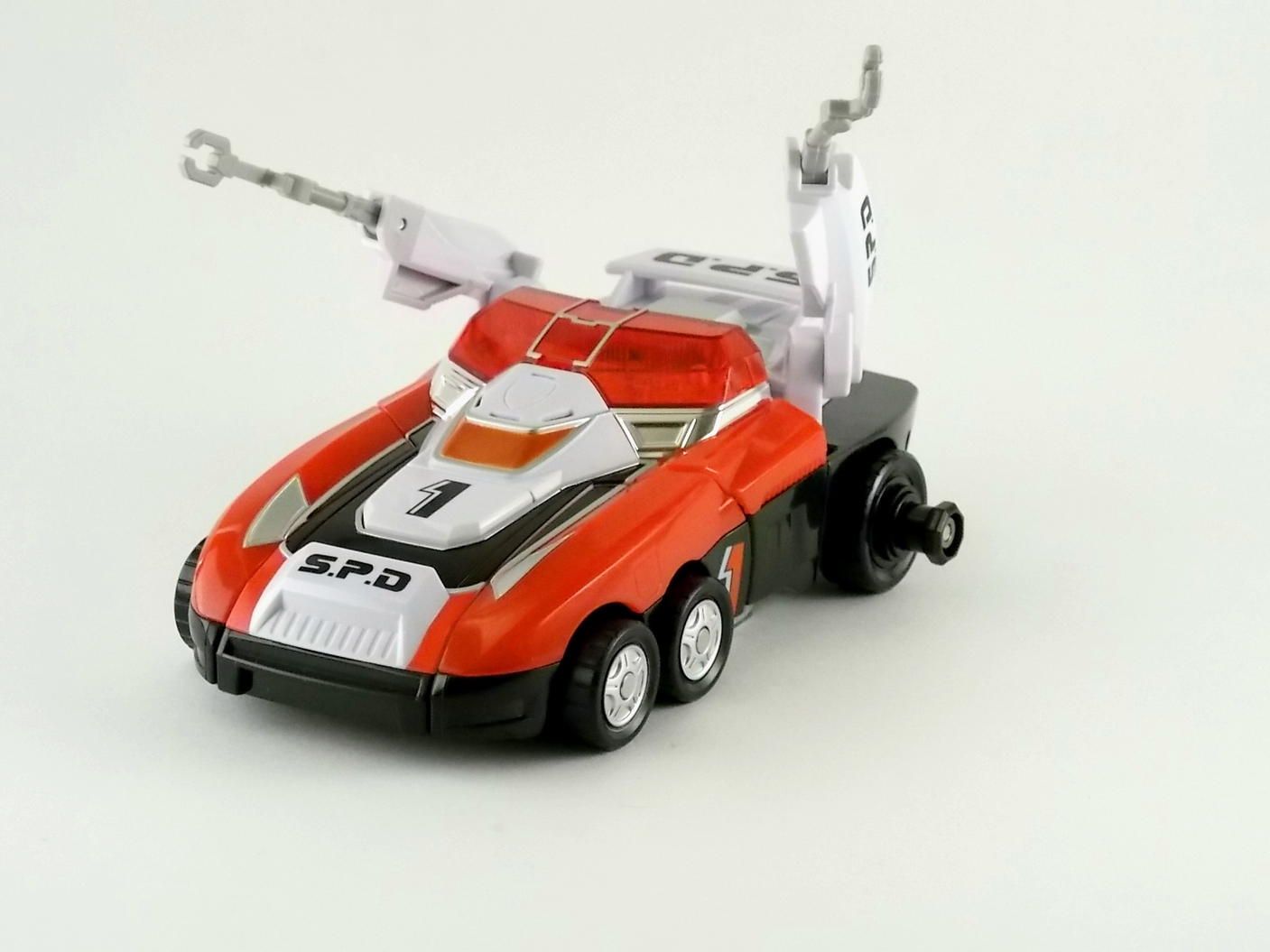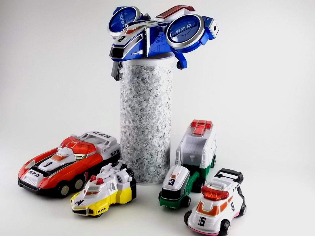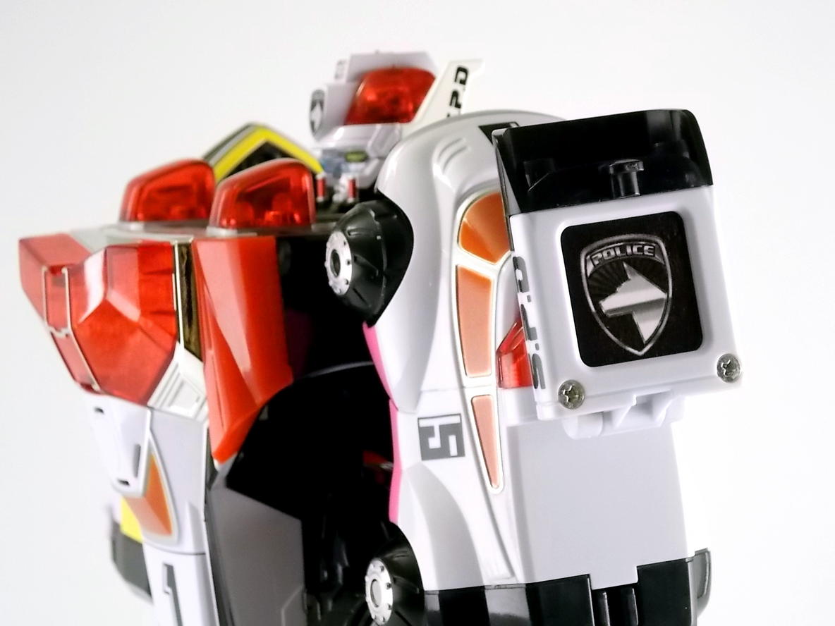 For the month of May Tokunation.com is celebrating all things Power Rangers SPD. And what's an SPD celebration without some toys from it's source material, Tokusou Sentai Dekaranger! So today we bring you a gallery of the DX Dekaranger Robo! That's the Delta Squad Megazord for Power Rangers fans. Composed of the 5 Dekamachines (Patstriker, Patgyrer, Patrailer, Patarmor, & Patsigner) the Dekarobo is unique in that it has 2 primary weapons. The Judgement Sword and Signal Cannon! It also has a giant pair of Deka Cuffs and Patsigners' SP license to use for arresting and judging Alienizers respectively. One other unique feature to this set is the inclusion of a decal sheet (as well as various cardboard cut outs to be used with Patsigner). Dekaranger was the final sentai toyline to feature label sheets for it's DX robos. Starting with Magiranger any labels would be either factory applied or simply be replaced by paint applications. Build Up Dekranger Robo!