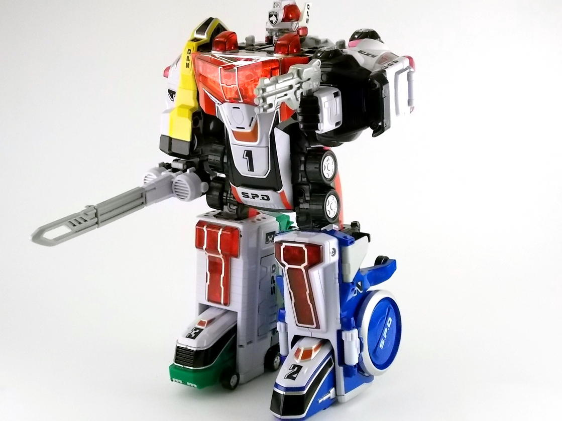 I actually had the B-Squad Megazord before it vanished. I like this look. It may be a Voltron-Oh, but it looks good, and all the Dekamachines have their little features that makes them feel important, unlike doofy ole Gokai-Oh.