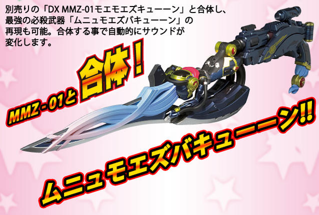 The page features images of the weapon in its various mode, including a size chart and combination with the previously released MMZ-01 Moe Moe Z-Cune. There is also a video advertising the item, which we've linked for you below; The MMZ-02 will be released in September, priced 15,750 yen. Check out the full sized images after the jump!