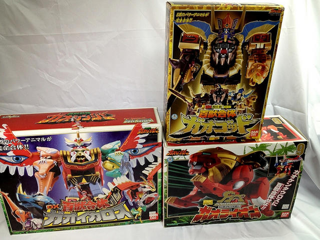 I'm still a bit bummed because some of my rarer pieces don't seem as rare anymore. OhRanger Robo, TimeFlyer & Ranger set, GaoApe, GunBirOh Black ver... Oh, but hey he did complete GaoKnight Black ver. the same way I was thinking: GaoKing Black ver. + GaoApe + TRU GaoKnight + GaoElephant = complete GaoKnight & GaoKnight Black ver. Last edited by schlagwerk; 06-17-2013 at 07:14 PM.. |