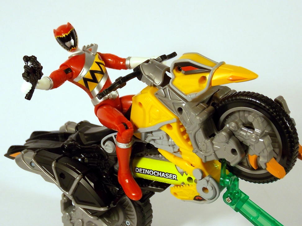 Need some more bravery in your life? Well we can help! Today Tokunation continues to take a look at the toylike of Zyuden Sentai Kyoryuger! While we take a break from the DX mecha we'll be focusing this time on the Deinochaser & Kyoryu Red set! This set contains the tiny Zyunderyus Deinos and Chase as well as a poseable little Kyoryu Red figure. Rounded out with the Deinochaser battery and a tiny Revolver and Calibur for Kyoryu Red! While not perfect this bike is a better fit size wise for SH Figuarts type figures rather than the tiny figure included with it. So this should be perfect for the upcoming SH Figuarts Kyoryu Red! Want TokuNation.com updates on the go? "Like" us on Facebook and follow us @tokunation on Twitter!!