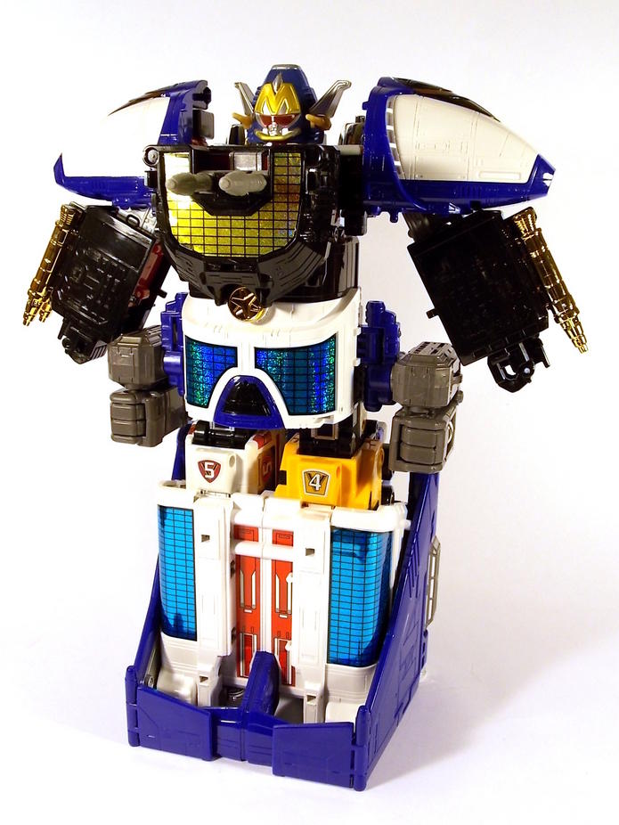 Liner boy, or Max Liner/Max Shuttle as it's known in it's vehicle modes, is an independent robo that unlike it's US counterpart (Max Solarzord) did not require a pilot thanks to an onboard AI. In fact there was no 6th ranger in GoGoV either, so far the only sentai not to introduce a new member within the series since Zyuranger! But the existence of this mecha in GoGoV and it's lack of a pilot spawned the Titanium Ranger here in the US, thus the footage of this machine was adapted to make it appear to be his personal zord. Liner Boy also features a combo with the Victory Robo known as the Max Victory Robo known under the name Lightspeed Solarzord in the US! Want TokuNation.com updates on the go? "Like" us on Facebook and follow us @tokunation on Twitter!!