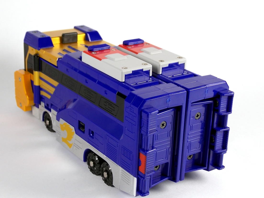 Today we bring you a DX gallery from RPM's sentai source material Engine Sentai Go-Onger, the DX Engine-Oh! Or as you may know it in the US, the High Octane Megazord! Engine-Oh is composed of 3 sentient vehicles called Engines; Speedor, Buson, and BeaRV! Note that this set only included the Engine Soul for Speedor as the others were included with the DX roleplay weapons released simultaneously. Also note that the US RPM toys are entirely different molds than the Go-Onger releases. RPM DX's were smaller and phased out the electronic Engine Soul gimmick. And stay tuned fans, all month long we'll be bringing you galleries from Go-Onger. ALL of the mainline DX mecha released for Go-Onger will be spotlighted for this months tribute. Engine-Oh, Gunbir-Oh, Seiku-Oh, Kyoretsu-Oh, Go-Roader Gt, and Engine Dai Shogun! Check out all the galleries over the coming weeks as Tokunation races down the highway of justice!! Want TokuNation.com updates on the go? "Like" us on Facebook and follow us @tokunation on Twitter!!