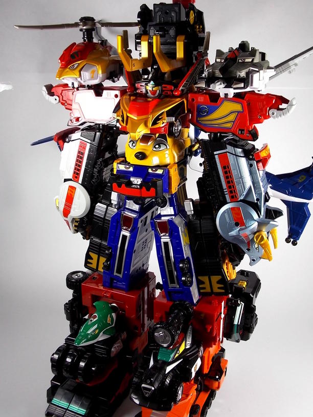 Following the standard Go-Onger mecha formula, Kyoretsu-Oh is composed of 3 ancient Engines; Kishimammoth, T-Line, and K-Line. More bestial in nature than the other Engines, these 3 contain enough power to help form the mighty Engine-Oh G12! One of the largest sentai robo combos ever, and the originator of the cluster/stacker term that many fans use, the G12 is a thing of beauty. In the US the G12 is known as the RPM Ultrazord. Stay tuned this week for galleries of Go-Roader GT and Engine Dai Shogun! Want TokuNation.com updates on the go? "Like" us on Facebook and follow us @tokunation on Twitter!!