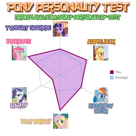 ![]() I'm an introvert, but got closer to Pinkie Pie. Hell, I'm surprised I got any Rarity, since I have nothing in common with her