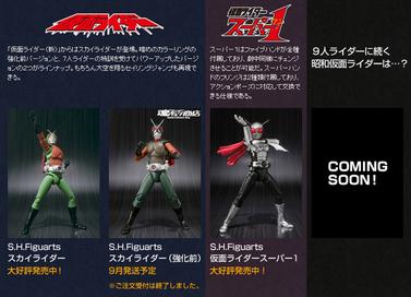 A new web page was just launched which showcases various characters from Kamen Rider’s Showa Era that have had releases thus far, and right next to Super 1 we have “Coming Soon!” Only three Riders from the Showa Era remain that have yet to receive S.H.Figuarts and those Riders are: Shin, ZO, and J but as this just a teaser announcement, there isn’t a whole lot of information to go on. What do you think the new S.H.Figuarts will be? Make the jump and speculate in the thread! Last edited by KamenRiderOOO; 07-25-2013 at 11:57 PM.. |