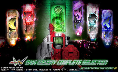 After several early teasers, Bandai's official site has put up a complete page detailing the Complete Gaia Memory Selection, a superb recreation of the powerful Memory devices found in Kamen Rider W.