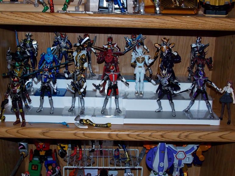 ![]() Be aware that I pose my stuff in Super Hero Time pairings. So Gokaiger/OOO, Shinkenger/Decade, Boukenger/Kabuto, etc. Also ALL of my stuff is BOJ releases. I don't take any BOA substitutes, the exception being the battle bikes on my 90's Heisei Sentai shelf. ![]() ![]() ![]() ![]()