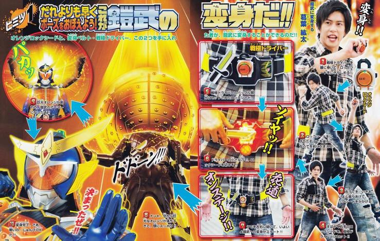 Had enough yet? We didn't think so! Kamen Rider Gaim continues to be elaborated on with more magazine scans! This set features the 3rd rider of the series, Kamen Rider Ryugen!