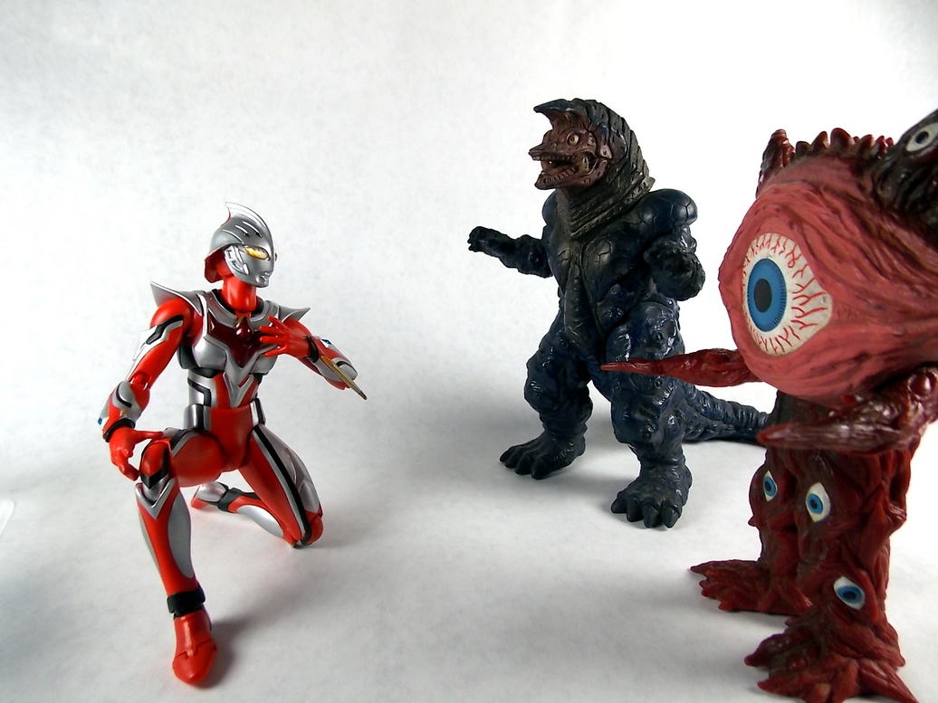 If you ever wondered why Ultra-Acts were larger than SH Figuarts, that's your reason. They scale really well with Bandai's long-lived line of vinyl Kaiju. Golza and Gan-Q would have made great Nexus monsters!
